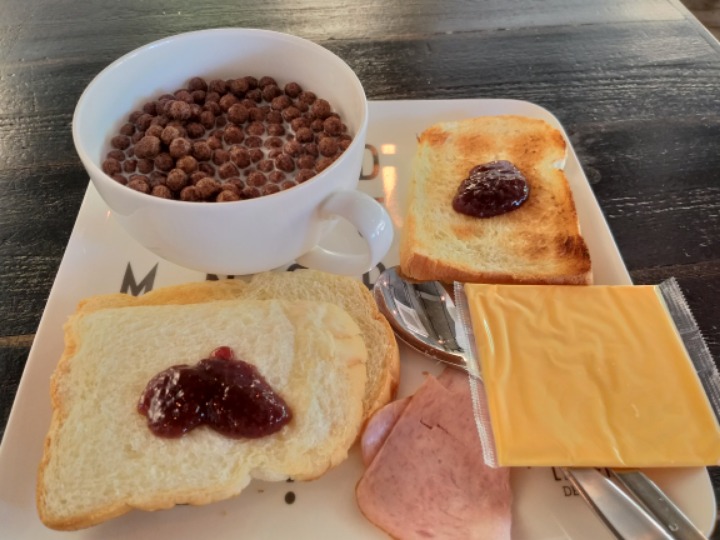 시리얼도 두 종류있고 주스랑 커피도 마실 수 있어