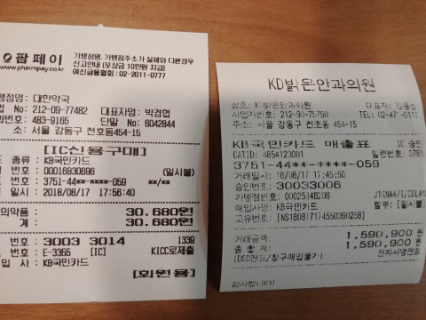 수술비는 150만원 검사 진료비는 9만900원 정도 약값은 3만6백80원 나왔어