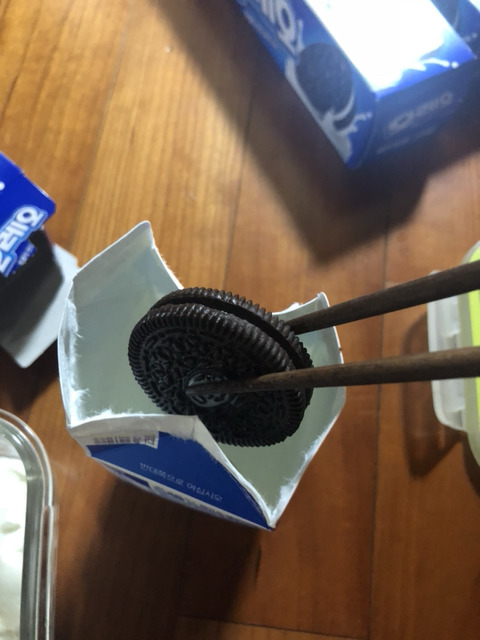 2.오레오를 촉촉하게 해야하니깐 우유속에 퐁당퐁당