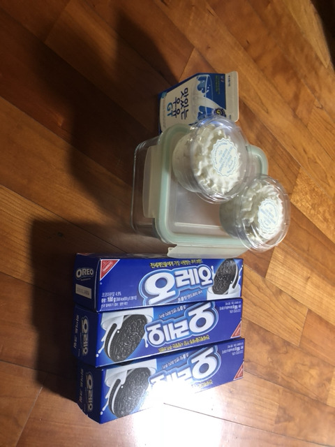준비물:우유,오레오,생크림,락앤락통