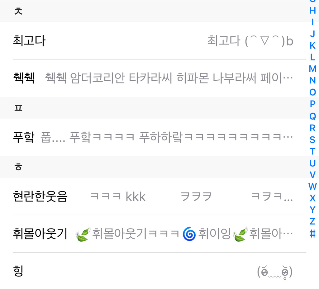 텍대 설정할 때 많이들 문구랑 단축키랑 헷갈리더라 ㅠㅡㅜ 밑에 사진처럼 단축키엔 한글 넣고 문구엔 설정할 거 복붙해 넣으면 돼 (๑╹◡╹๑)