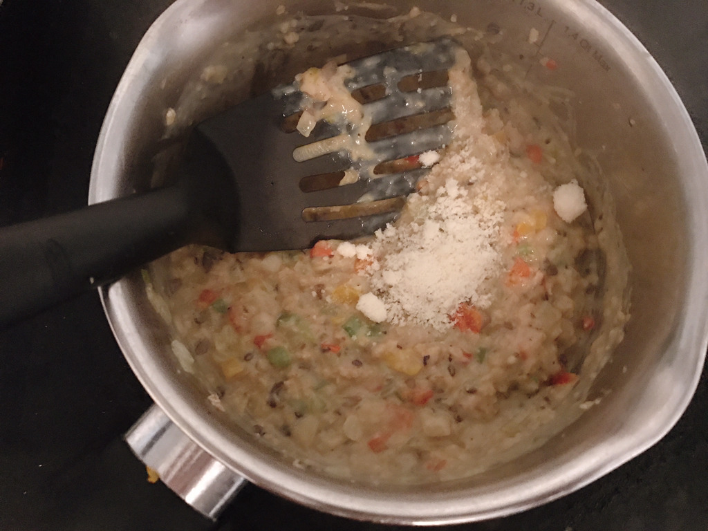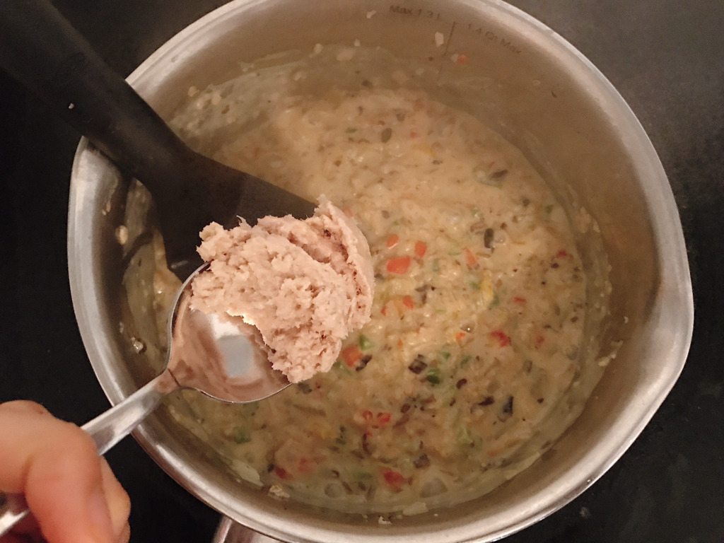 참치와 파마산치즈를 넣고 약불에서 잘 섞어주듯 끓이면 완성이야!
