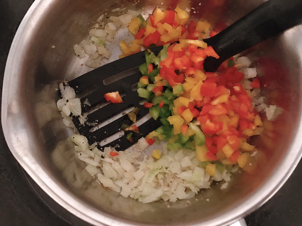 양파가 어느정도 투명해지면 파프리카를 넣고 볶다가