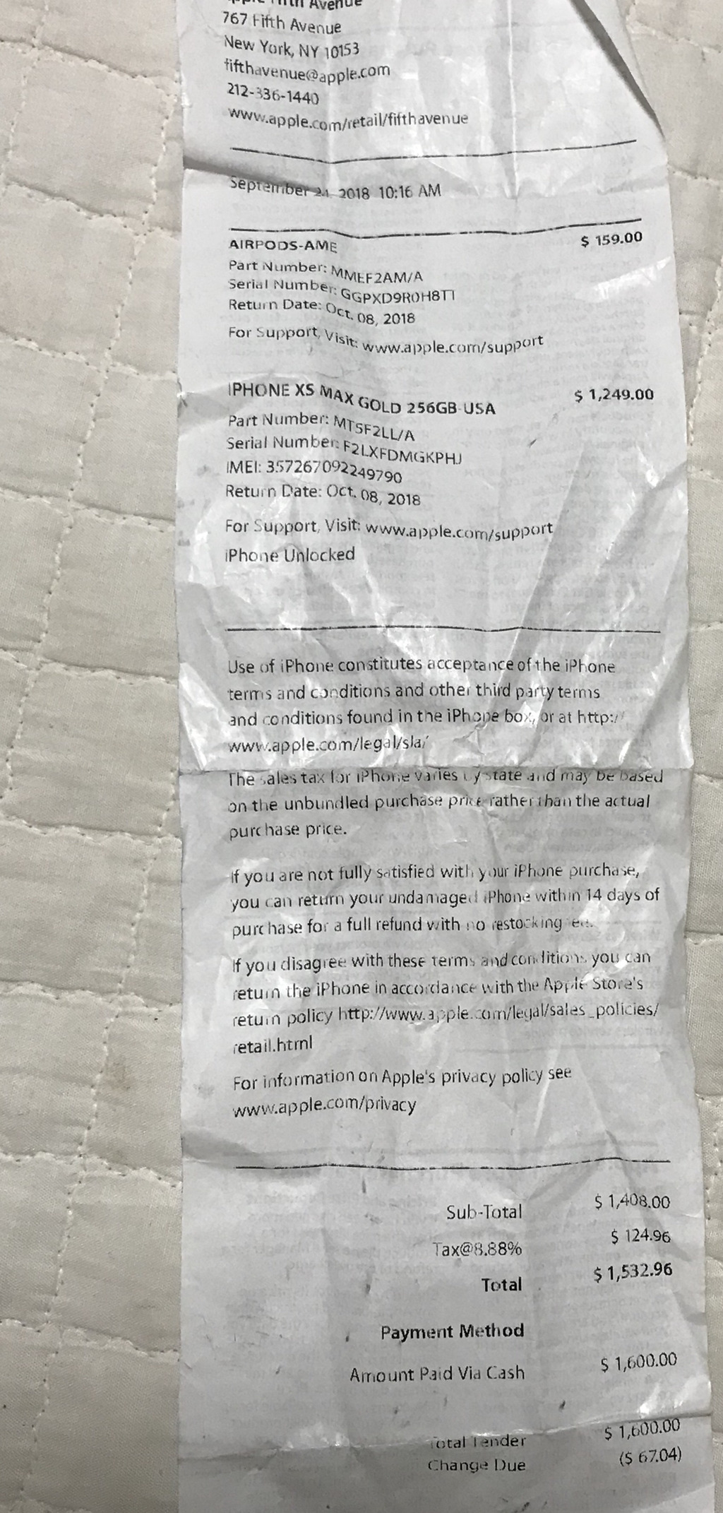 💜아이폰 XS MAX 256GB 출고가는 1249달러 ! + 세금 8.88% ㅠㅠ