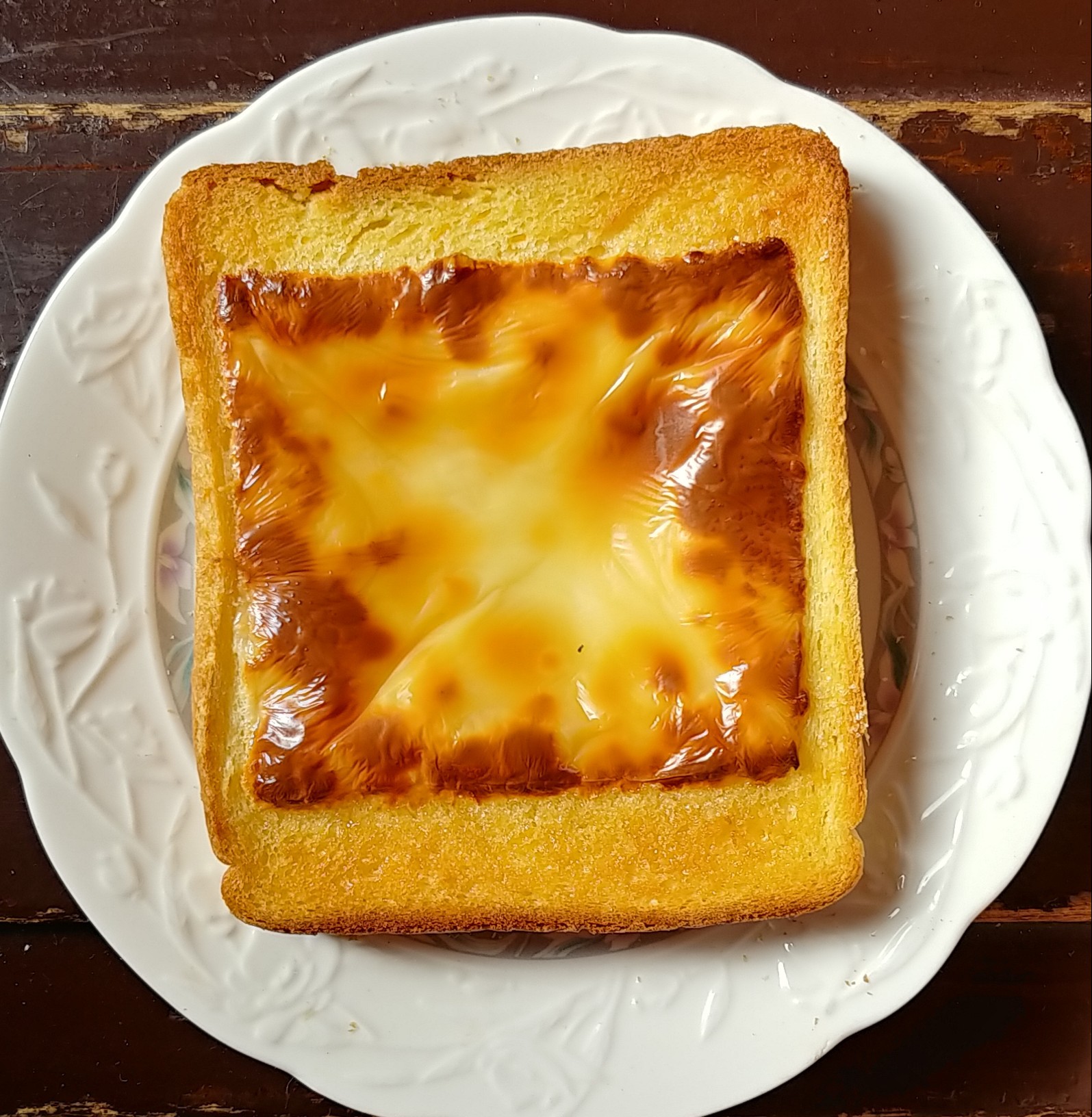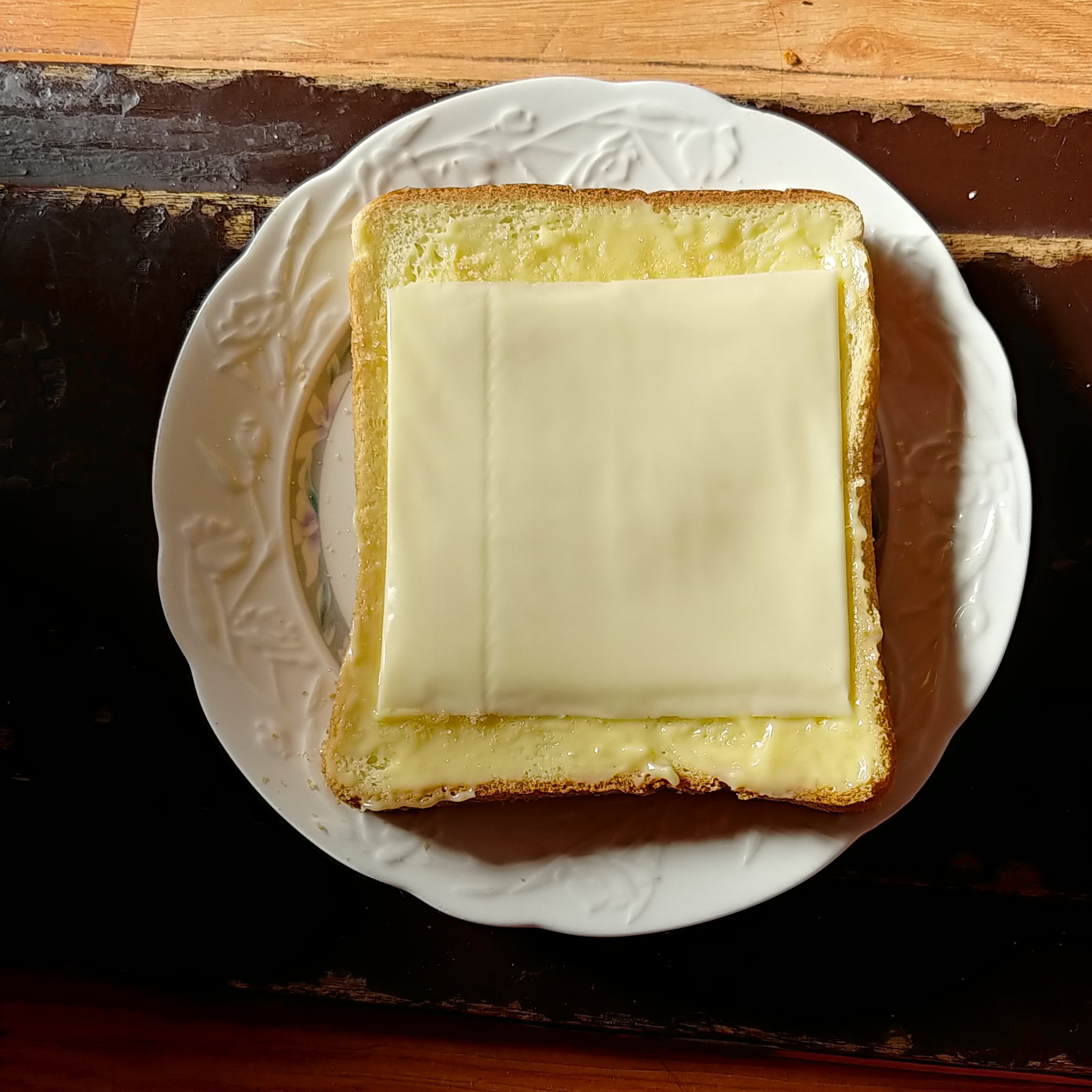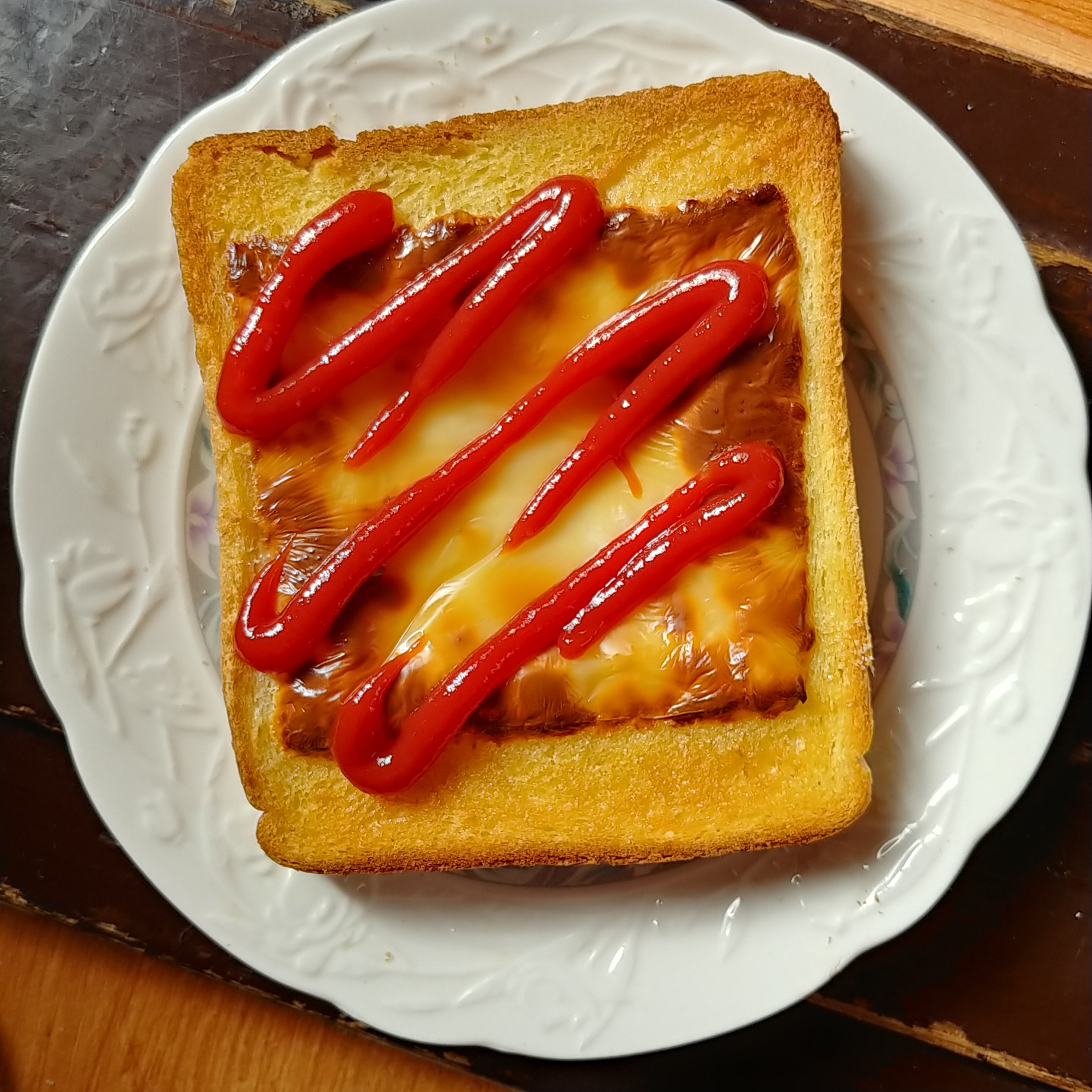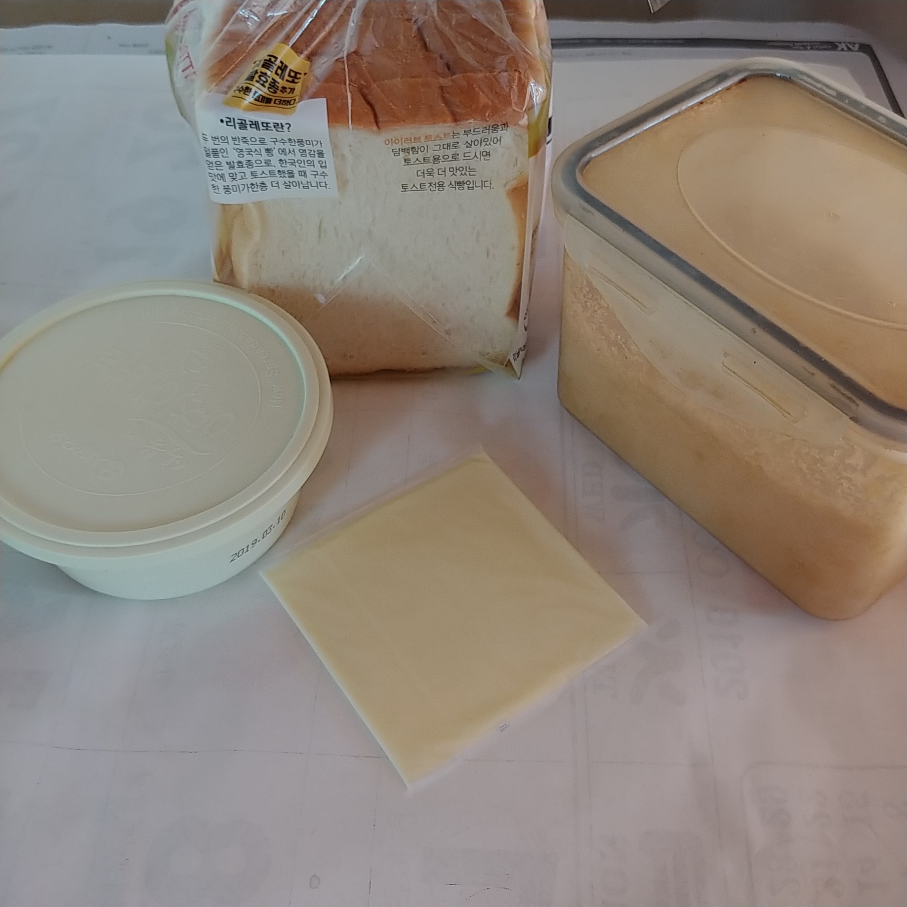 식빵 1장, 설탕, 버터, 슬라이스 치즈 1장 (케챱)