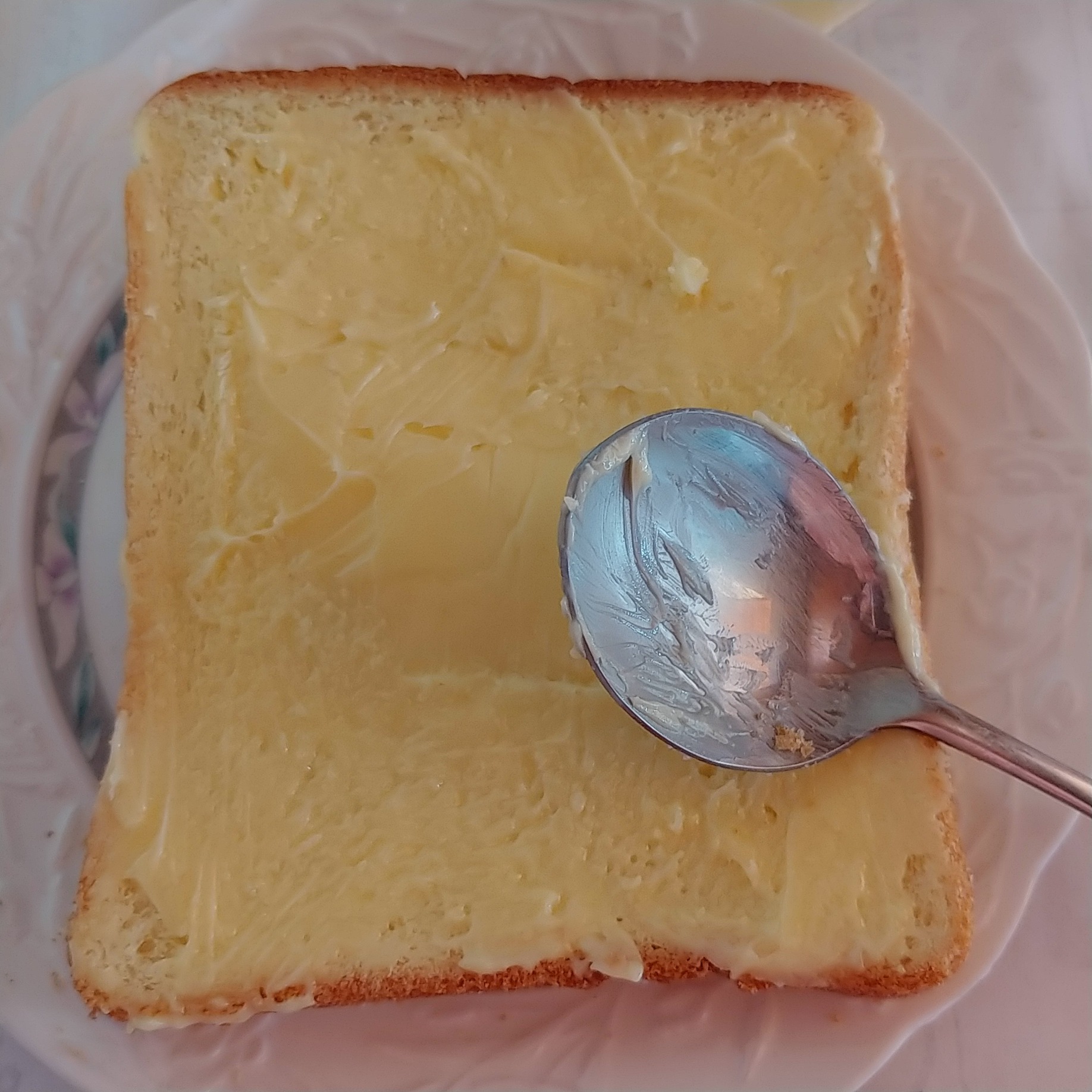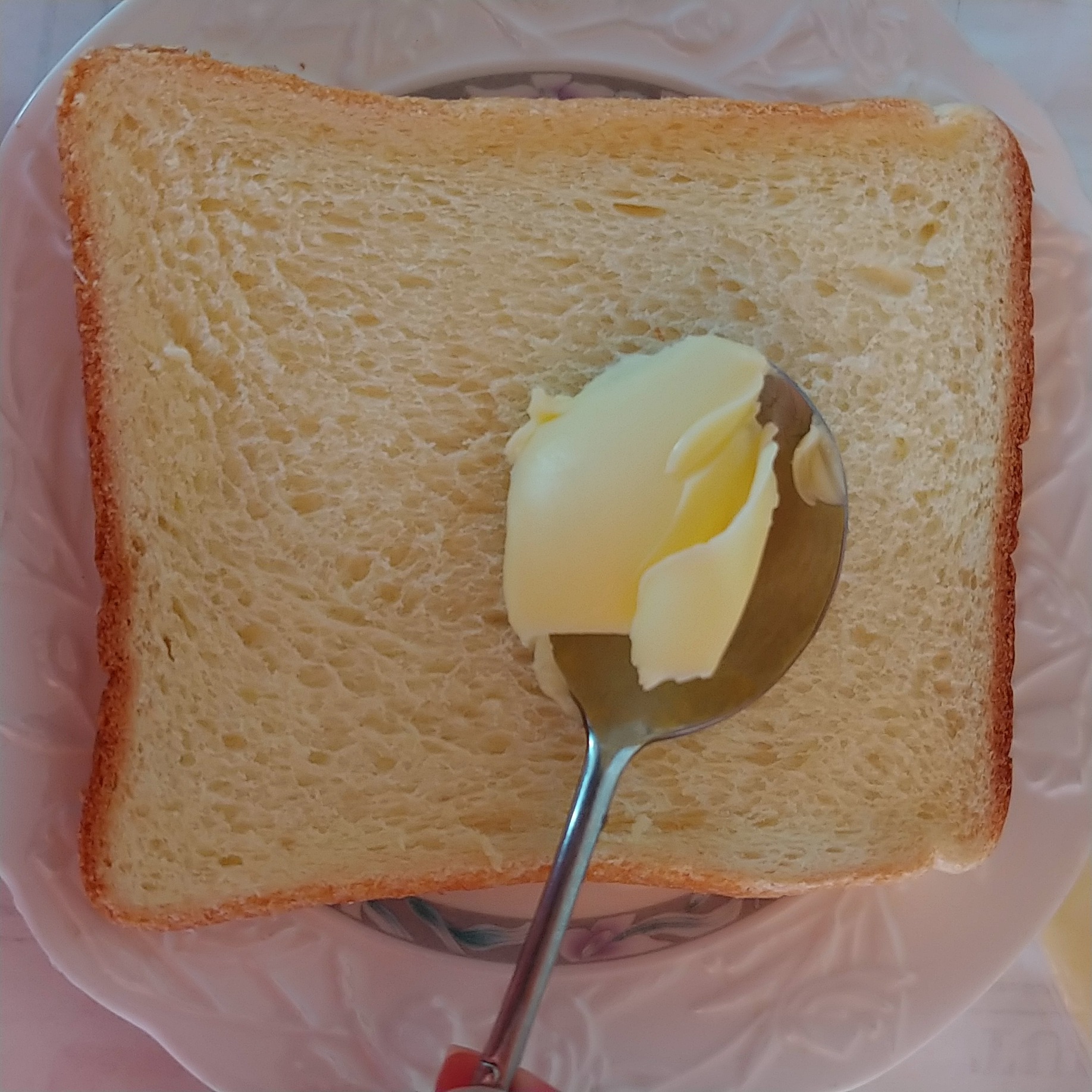 1.일단 빵 한장을 꺼낸 후에 버터를 식빵 한 면에 골고루 잘 펴바른다