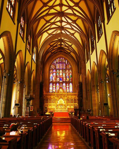 1860년까지 이 교회는 86m에 이르는 고딕 양식의 첨탑 때문에 뉴욕 제일의 높이를 자랑했는데, 현재는 금융가의 고층 빌딩에 둘러싸여 독특한 분위기를 자아낸다.