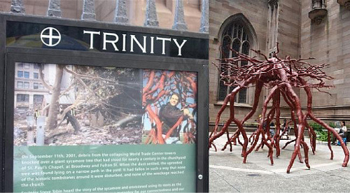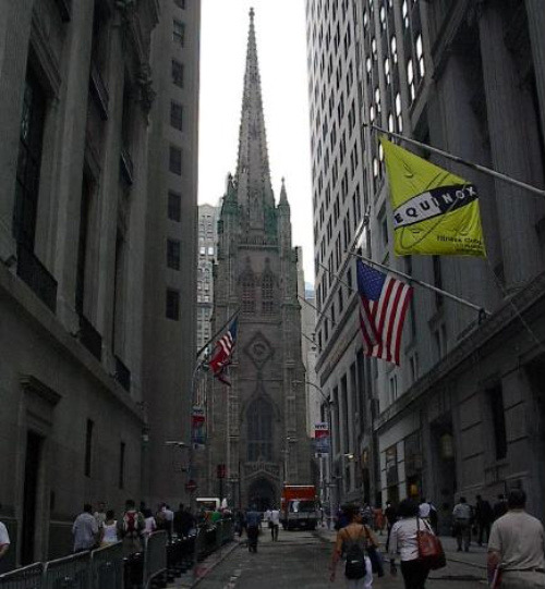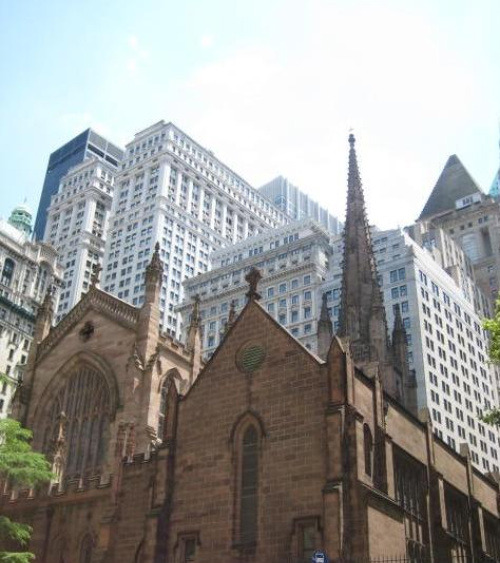 뉴욕시의 트리티니 교회는 맨하탄 하부 지역의 월 스트리트, 월드 트레이드 타워가 한 때 서 있었던 바로 그 자리와 직접적으로 마주하고 있는 곳에 있다.