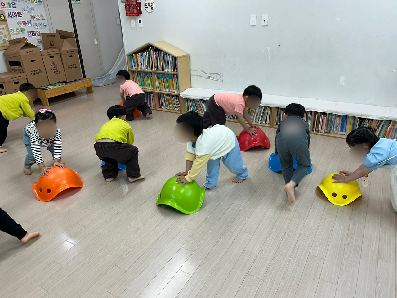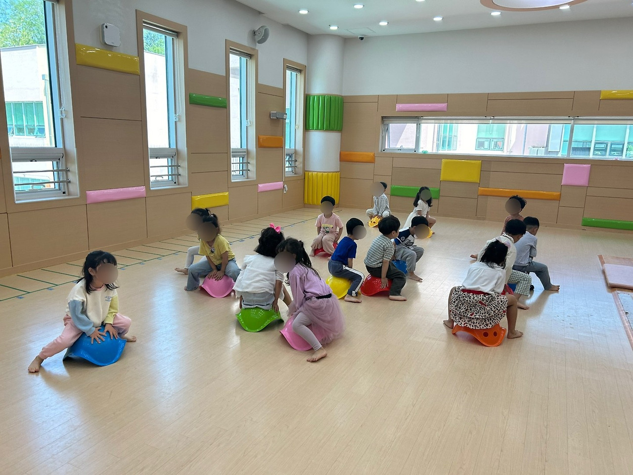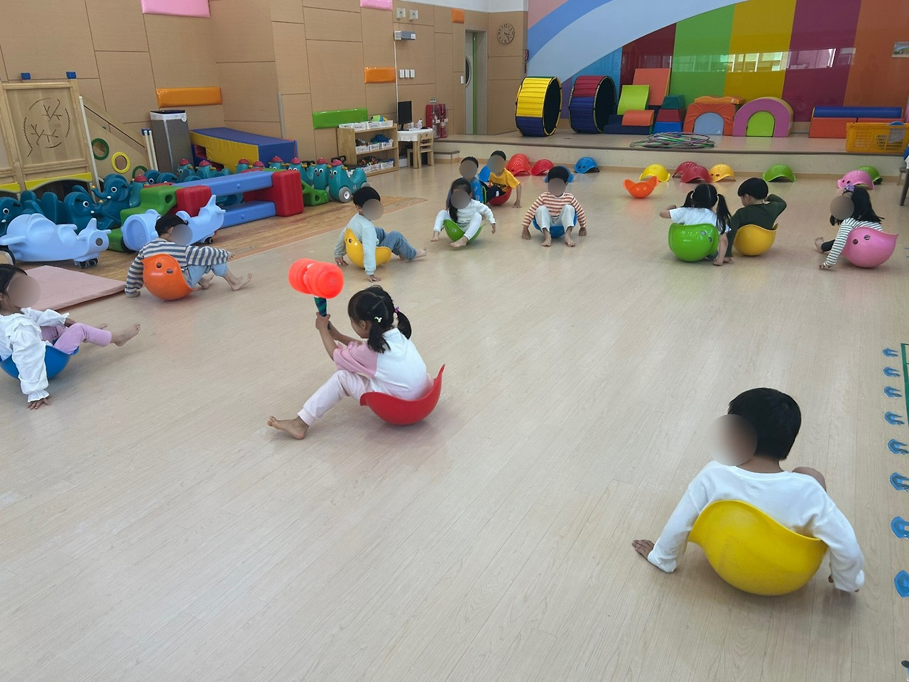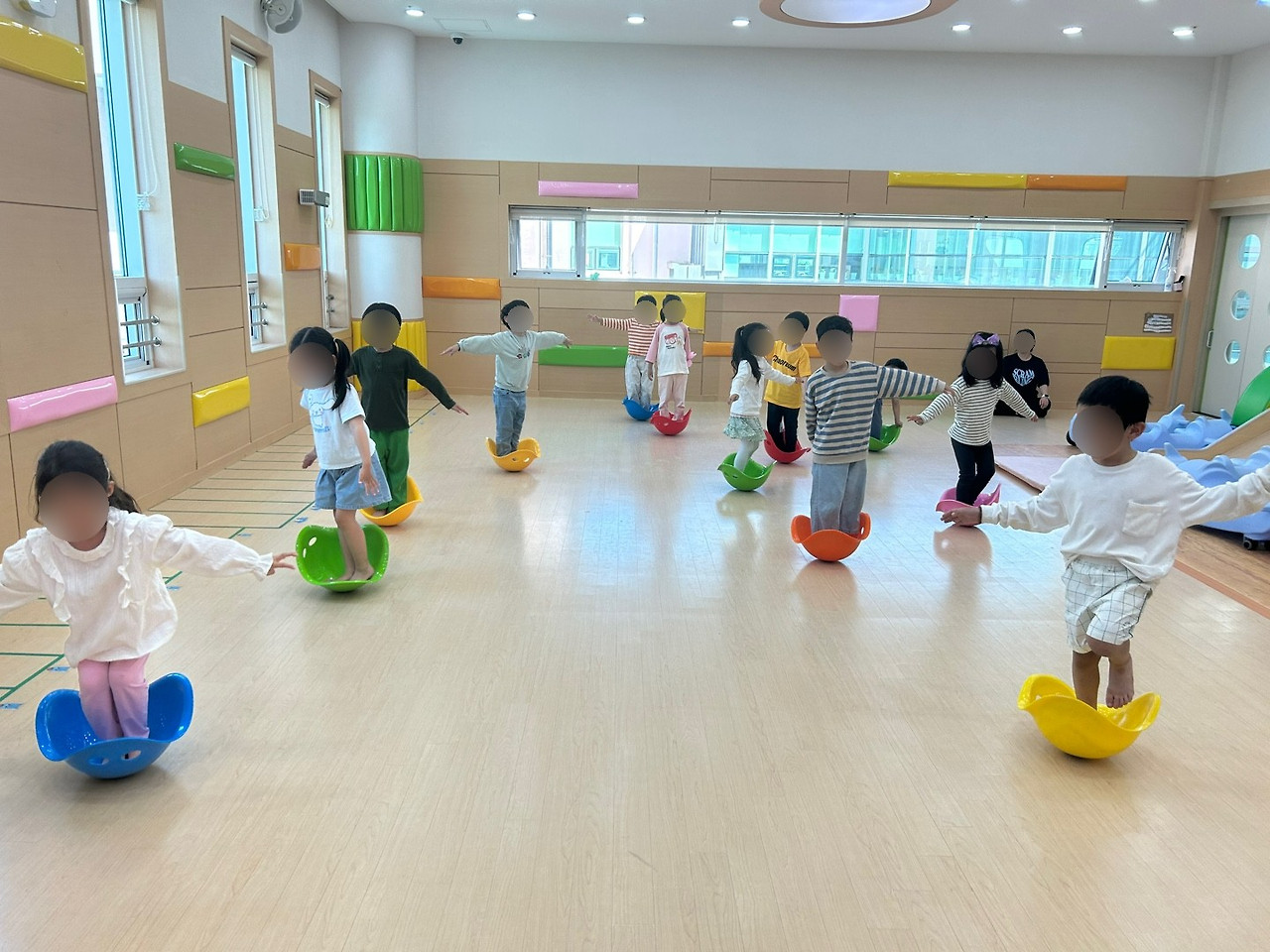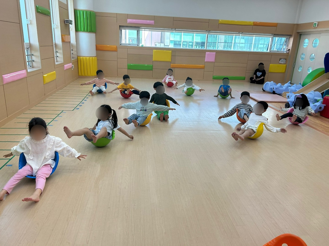 9. 부산유아체육 유아체육활동 : 빌리보에 앉아서 중심잡기를 해봅니다.