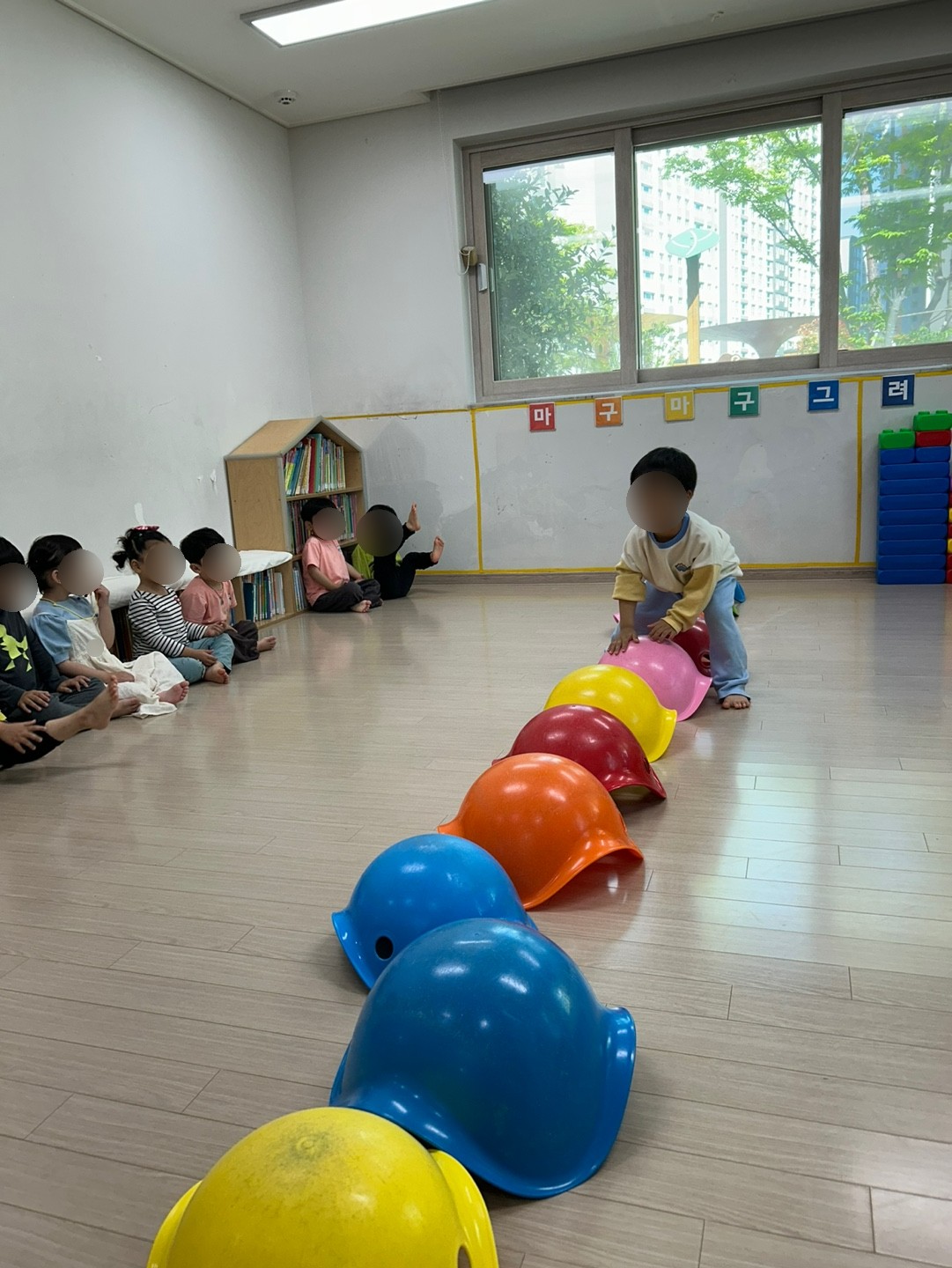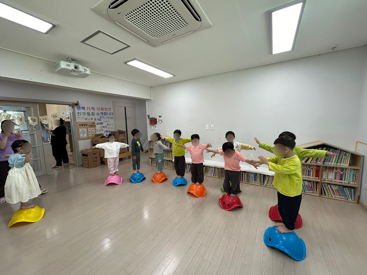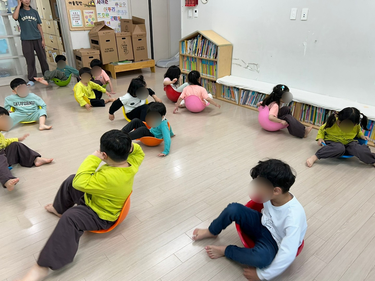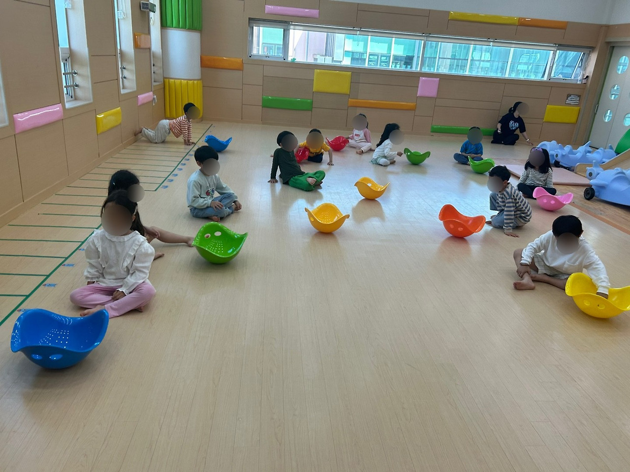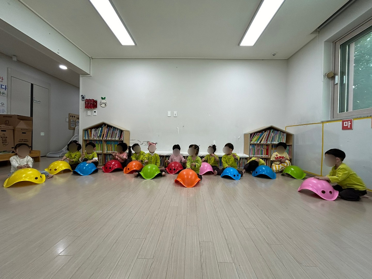 9. 부산유아체육 유아체육활동 : 빌리보에 앉아서 중심잡기를 해봅니다.