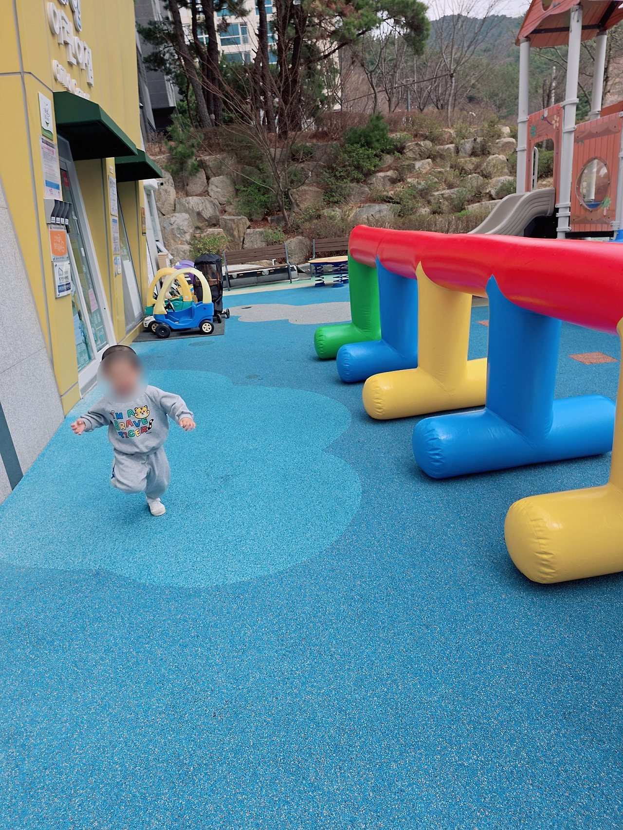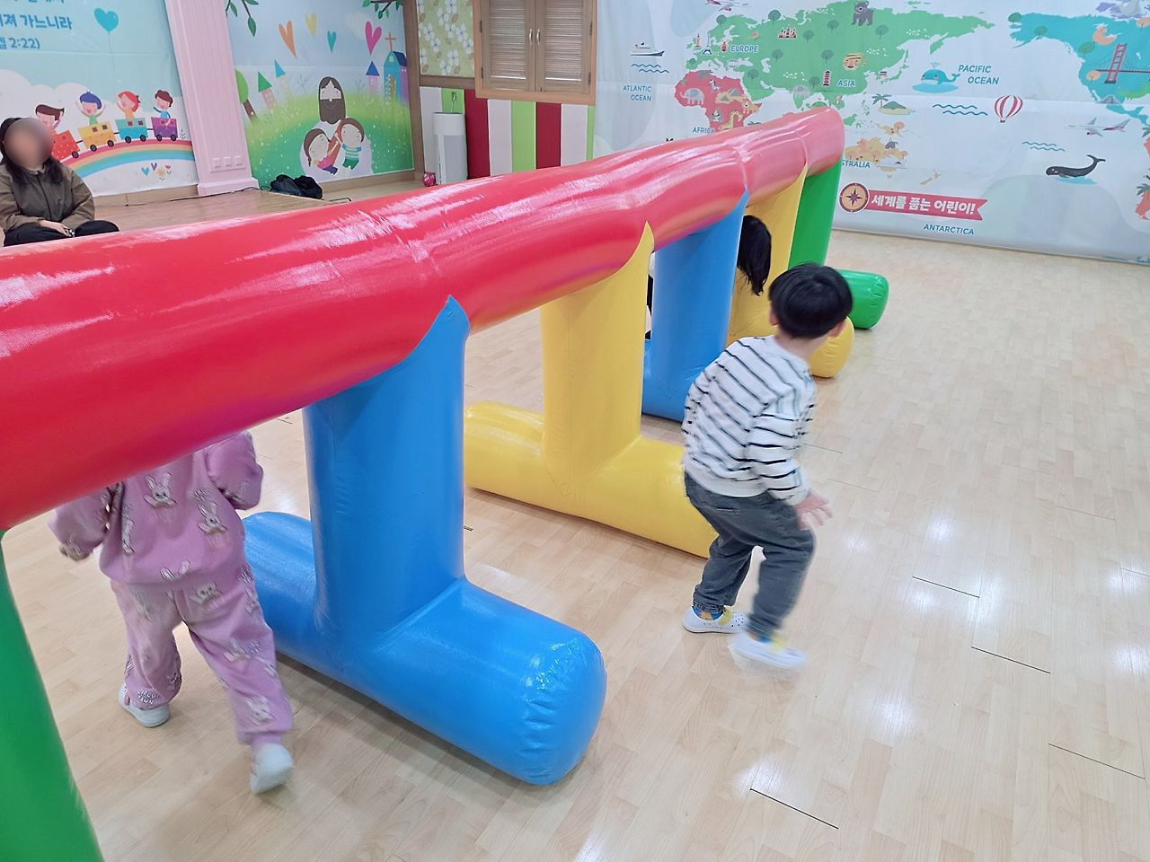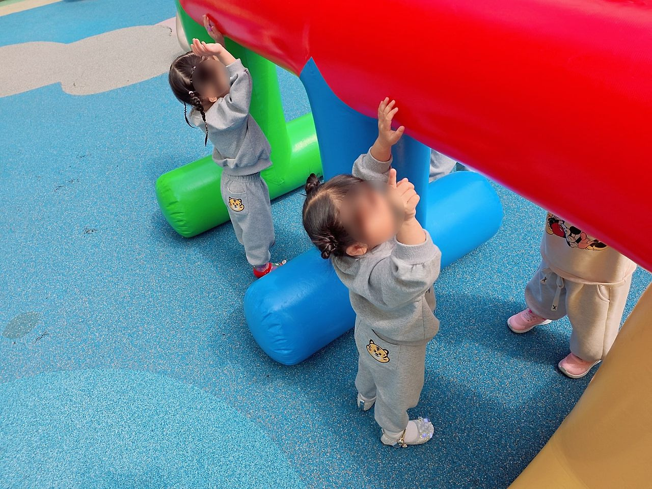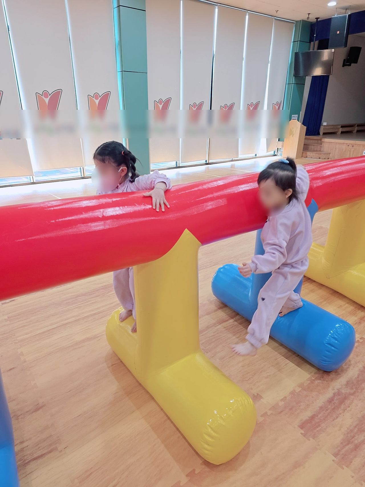이번엔 에어기둥터널 다리에 앉아서 점프도 해보고