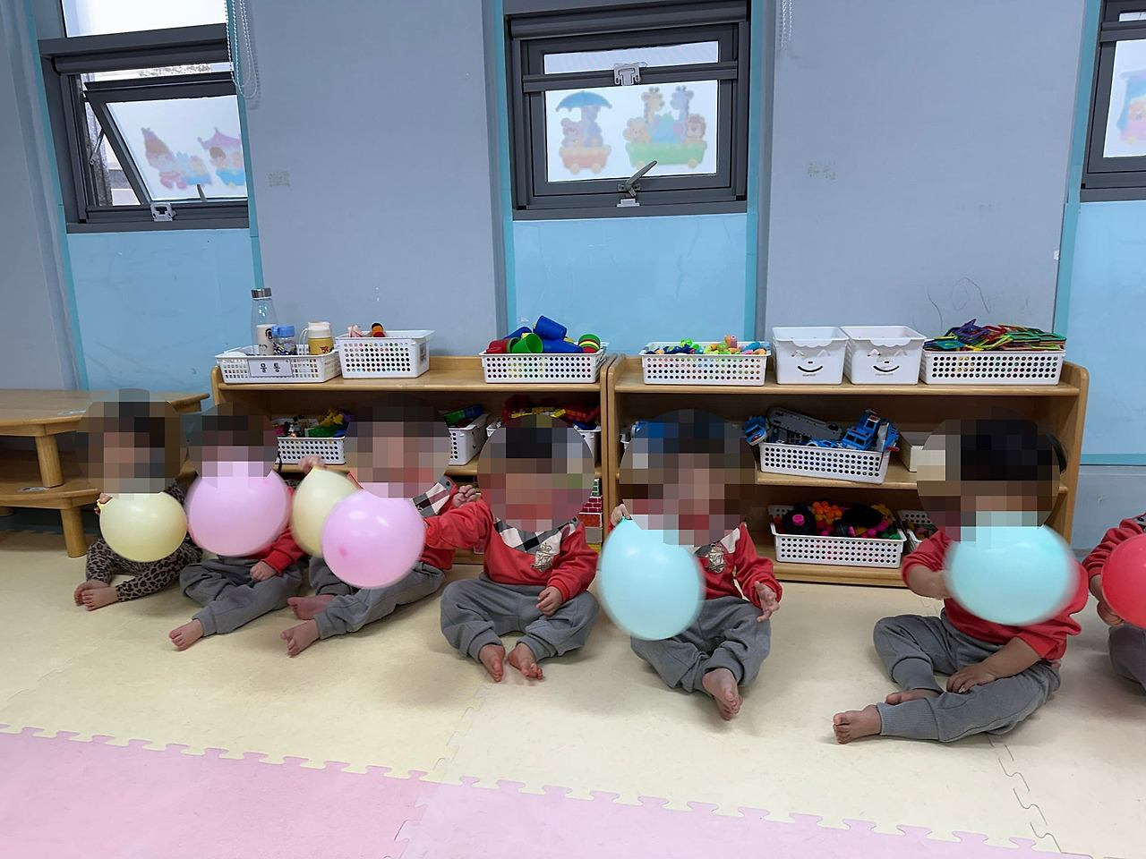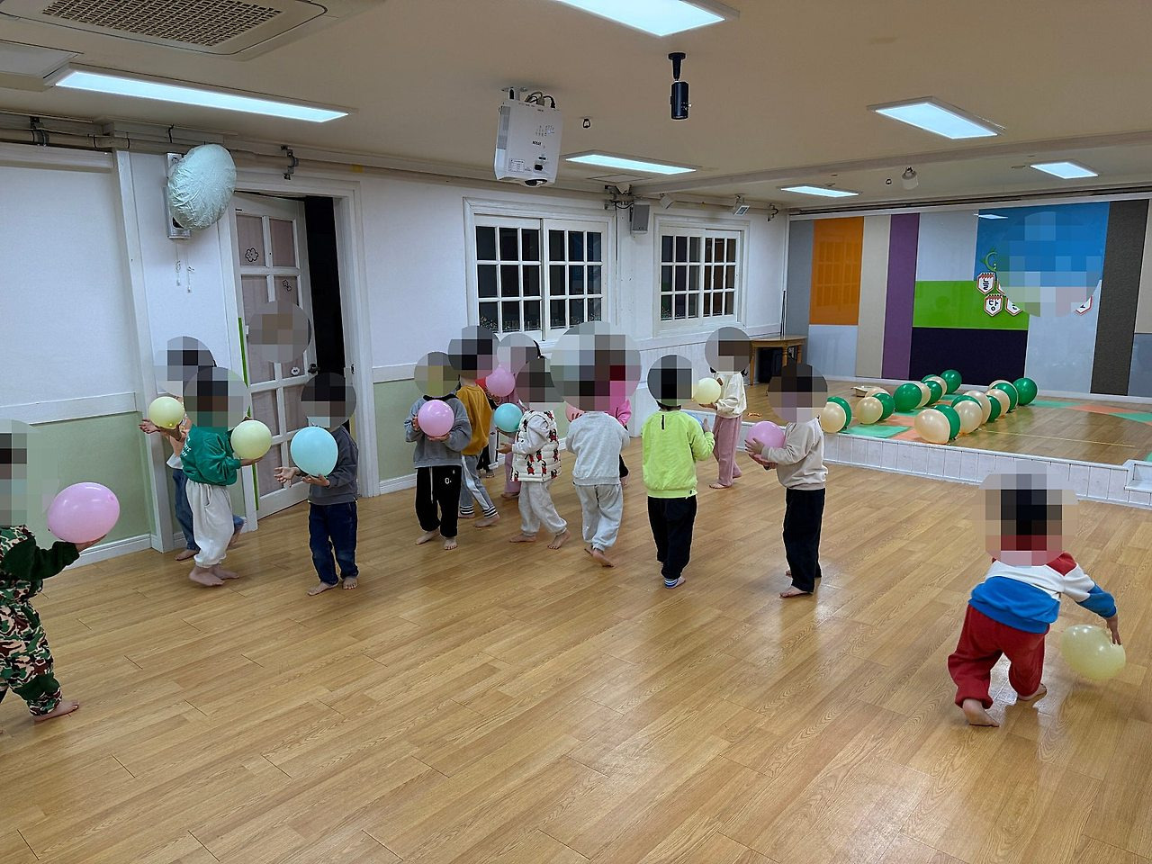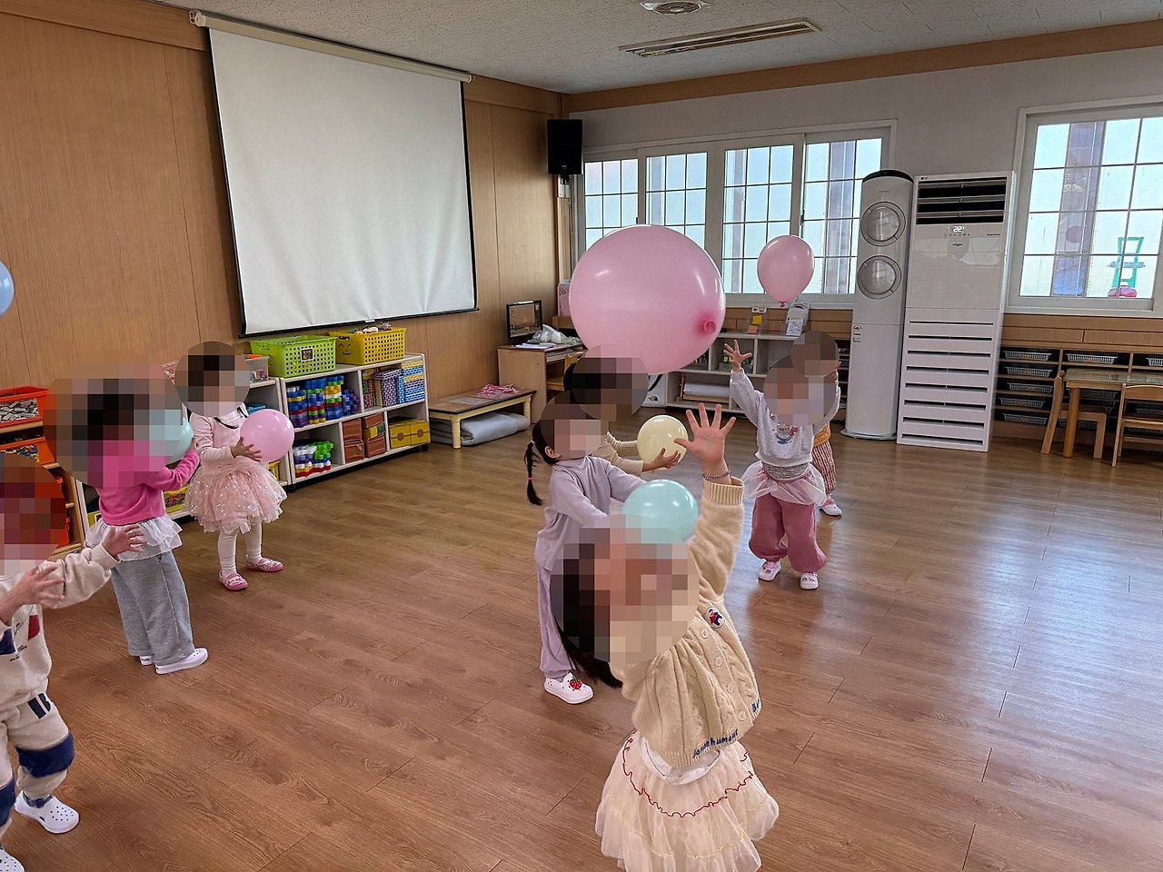 4. 부산유아체육 유아체육활동: 풍선으로 중심잡기를 하는 모습입니다!!