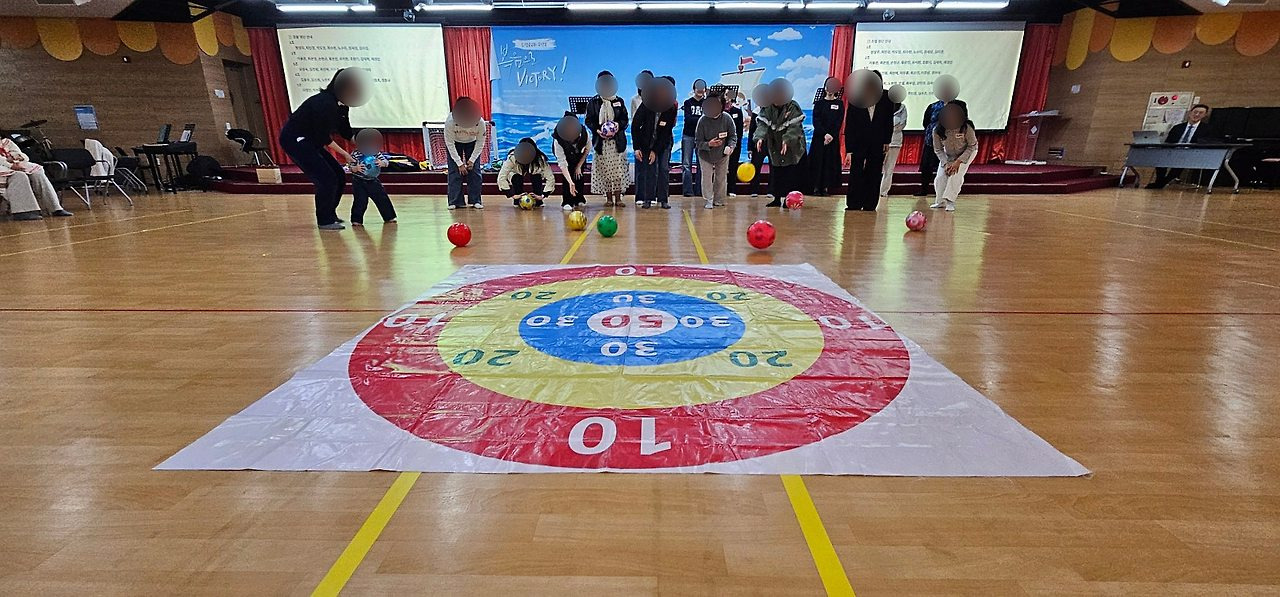 부산운동회 운동회활동 : 여성부 경기는 공을 굴려 과녁에 넣어봅니다.