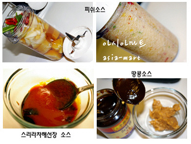 소스재료 : 피쉬소스, 스리라차칠리 소스(핫 소스), 해선 장, 땅콩버터, 파인애플 통조림, 마늘, 식초, 양파, 월남고추, 청량고추, 사과