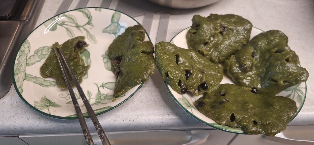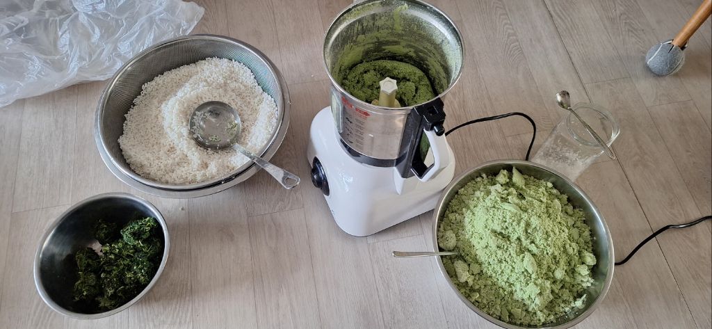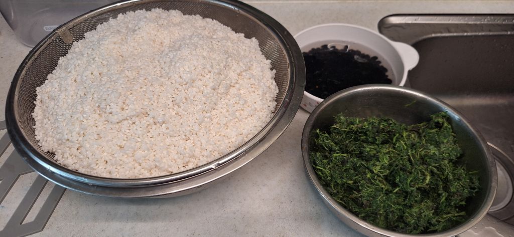 쑥이랑 쌀이랑 함께 빻아놨어요