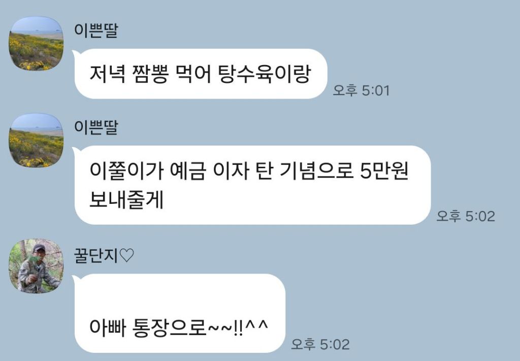 요거이 울딸이 엄마 아빠 짜장면 사드시라고 5만원입금( 인증샷 보내야해서리)