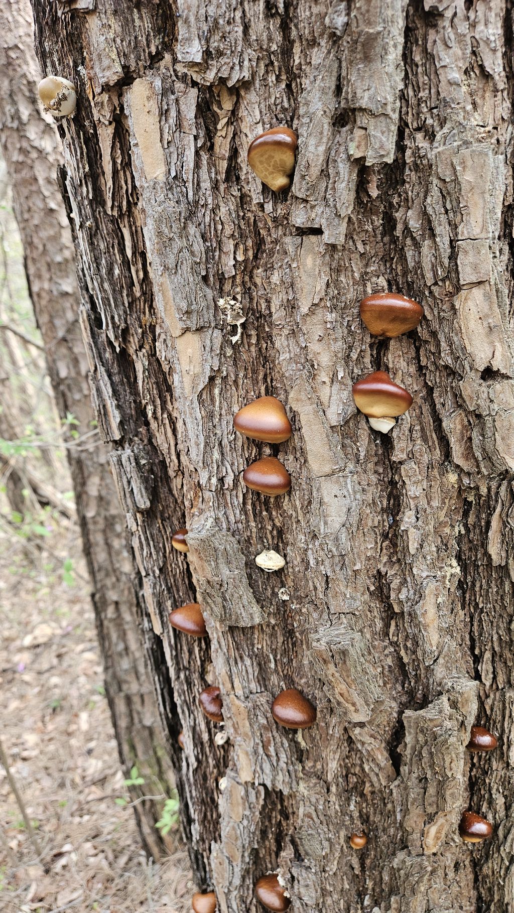 소나무한잎버섯이 지천이라 딴다고