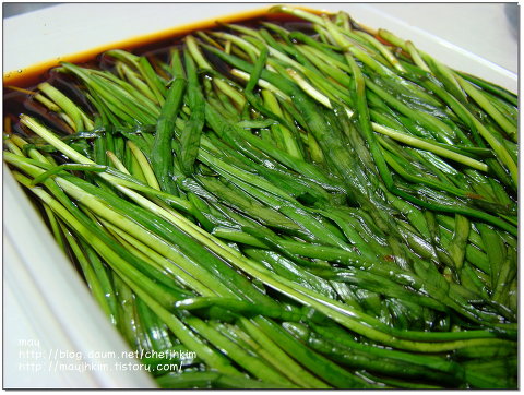 약간 따뜻한 달임장을 부어 줍니다.(부추 특유의 냄새도 줄여줍니다)