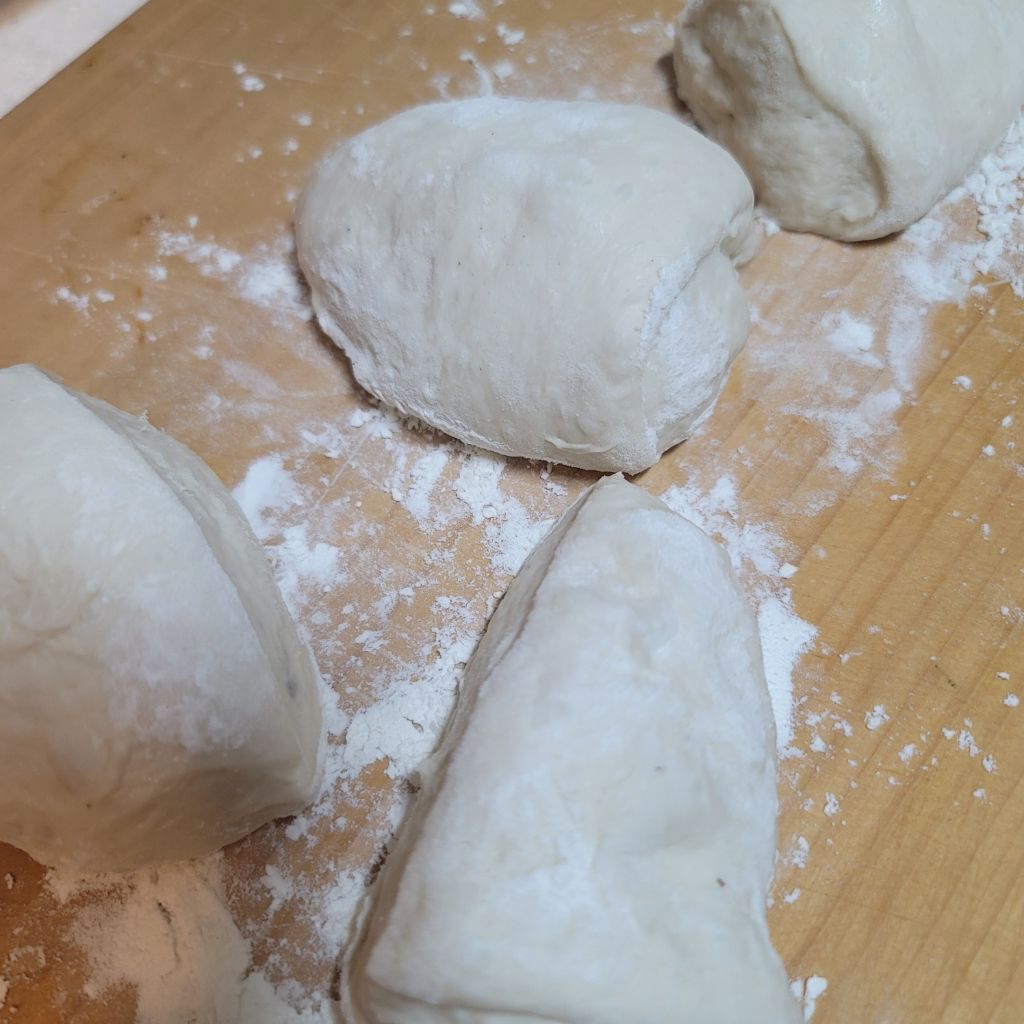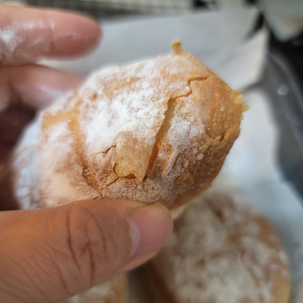 이스트에 밀가루 넣고 실온에서 발효해서 모양도 만들지 않고 그냥 떼어내서 굽더라구요