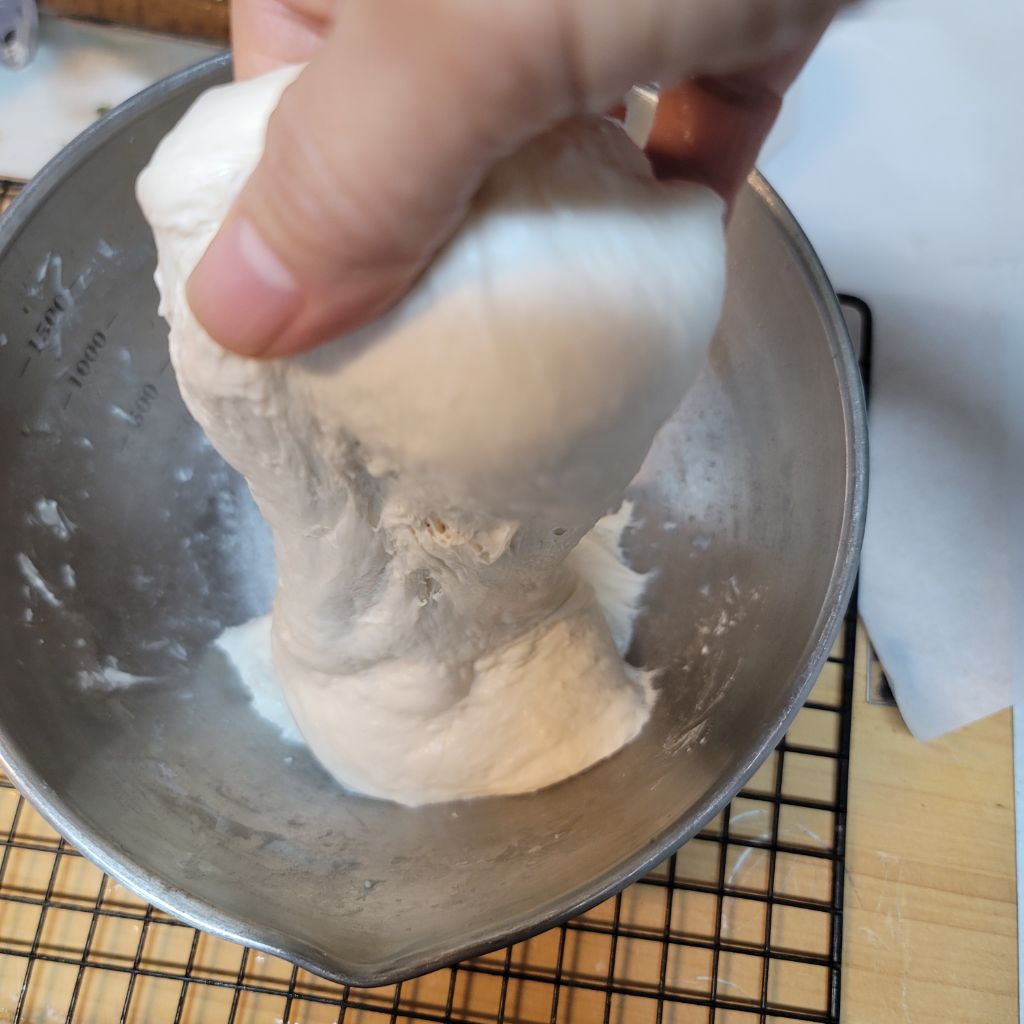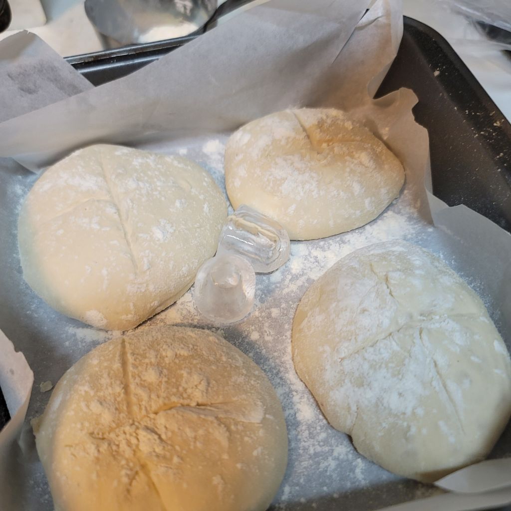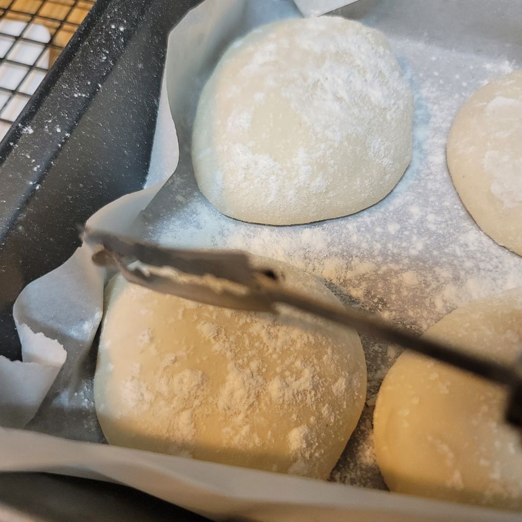 30분 후 같은 방법으로 들었다 놨다 한 후 동그랗게 만들어 30분 발효