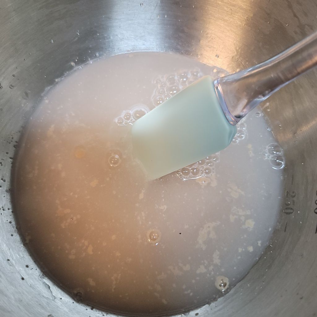 따뜻한물에 이스트를 넣어서 섞어주어요