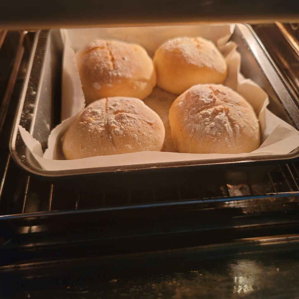 발효 후 밀가루 뿌려서 칼집 내주고 175도에서10분 정도 예열한 에어프라이어에 넣고 25분 굽기