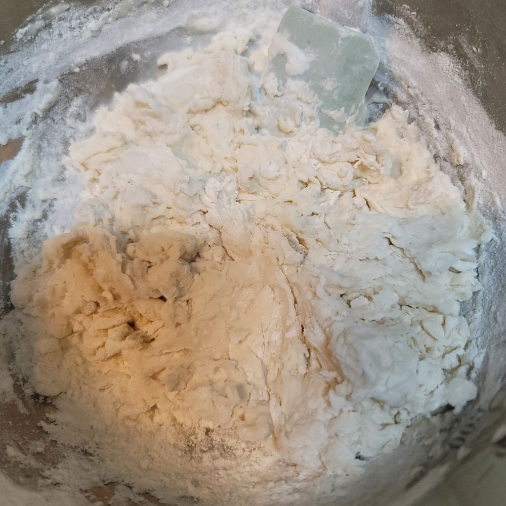 계량 된 밀가루와 소금 넣고 반죽하다가 오일도 넣어서 대충 휘저어 두세요