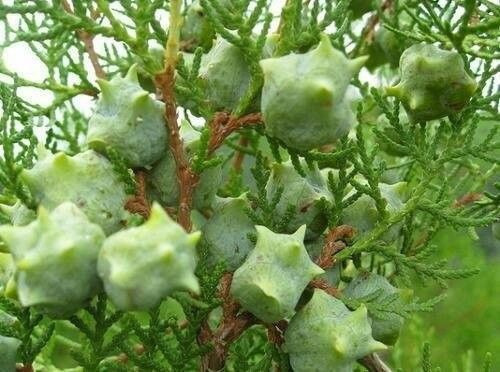 열매는 구과이고 목질이며 씨에 날개가 있다. 잎과 가지와 씨를 약재로 쓴다.