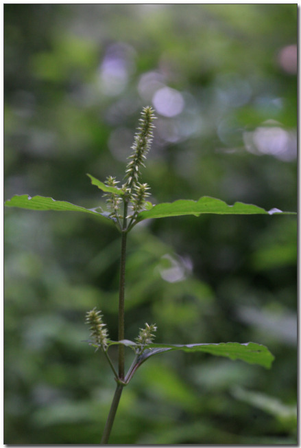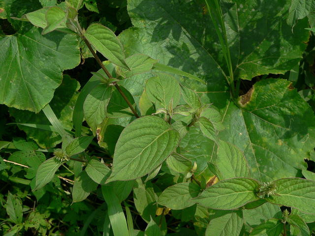 8~9월에 줄기와 가지 끝의 수상꽃차례에 연녹색 꽃이 모여 달린다. 열매에 뾰족한 털이 있어서 사람의 옷이나 짐승의 털에 잘 달라붙는다.