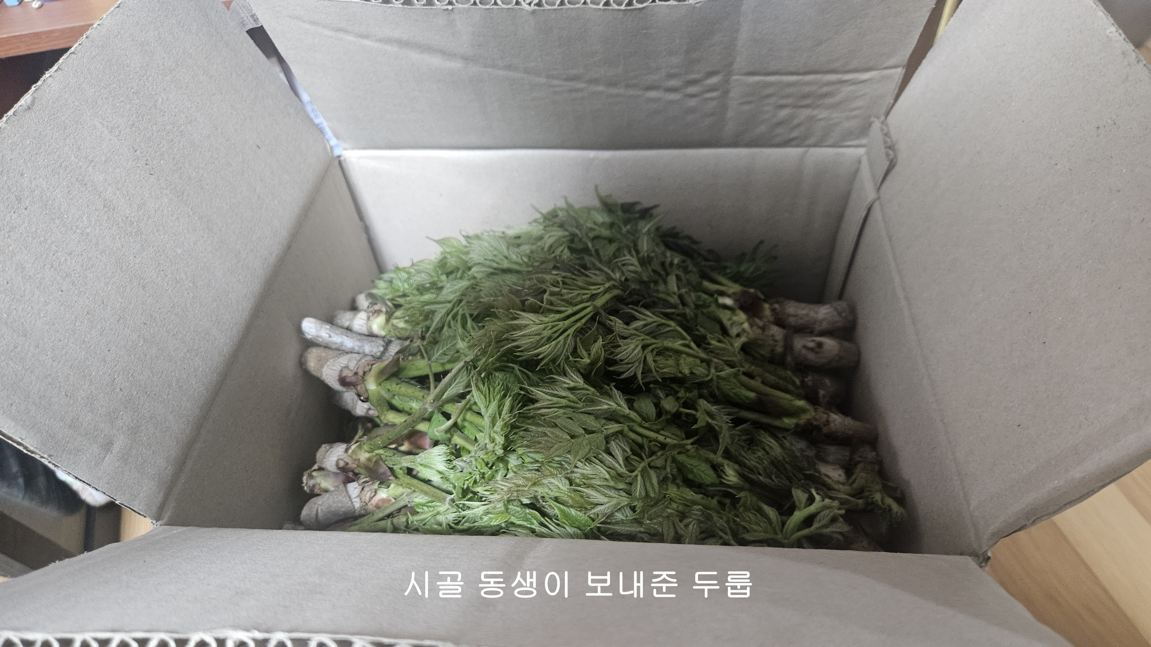 그런데 시골 동생이 두룹 한 상자를 보내왔네요.