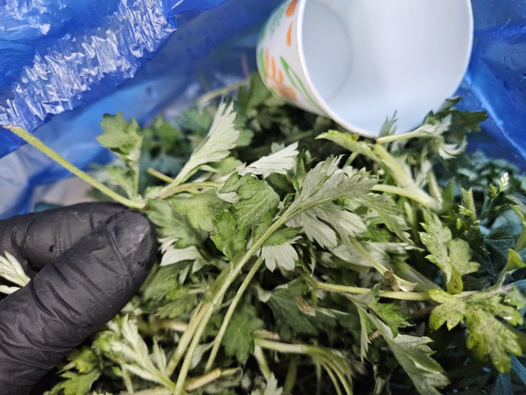 예를들면, 머위잎 500g + 봄쑥 500g + 불미나리 1키로