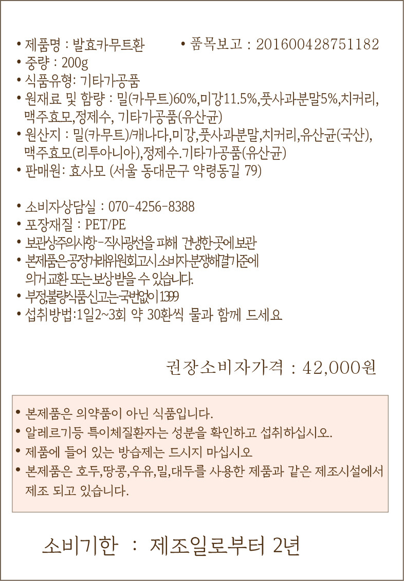 카무트 효소 공동제작 200g / 하루 2~3회 섭취(하루 2회 섭취시 1세트로 약50일정도 섭취)