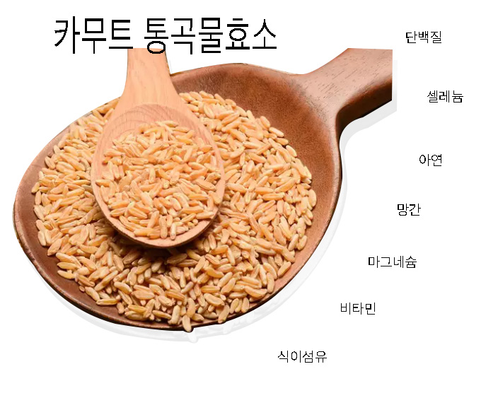 카무트는 통곡물 식품으로 풍부한 단백질과 우리몸에 꼭 필요한 무기질로 이루어져 있습니다.