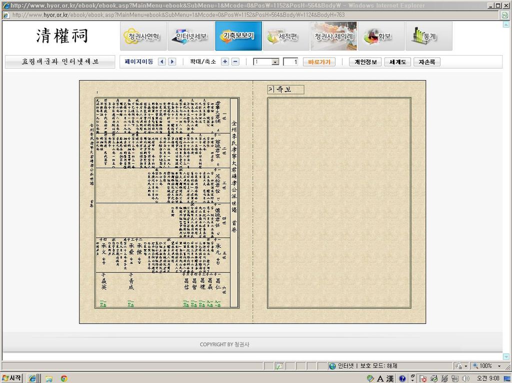 컴퓨터에서 인터넷으로 족보를 보기위해서는 청권사홈페이지에 가입을 하셔야 합니다.
