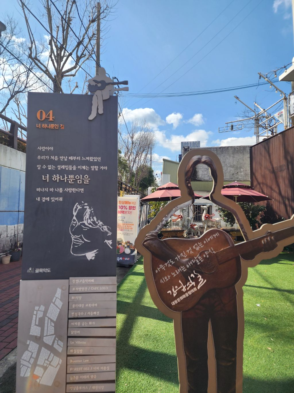 김광석 거리에서 작성자레가토|작성시간26.03.04|조회수38 목록 댓글 2 글자크기 작게가 글자크기 크게가 하늘 맑고 흰구름이 두둥실~날씨 좋고 친구 만나 좋은 시간 보내고 있습니다. 아침 일찍 와서 병문안 들르고김광석 거리 - 점심 - 수성못 - 카페 할거 다하고 내려갑니다.다음 일정을 위하여~ 다음검색 현재 게시글 추가 기능 열기 북마크 공유하기 신고 센터로 신고 댓글 댓글 2 댓글쓰기 댓글 리스트 작성자복숭아(진실농원) | 작성시간 26.03.04 가사가 좋은글이여요~ 작성자산골지기 | 작성시간 26.03.05 아름다운 뮤지션이었는데 ~사람은 가도 우리 가슴에 온정 품으라 합니다 댓글 전체보기
