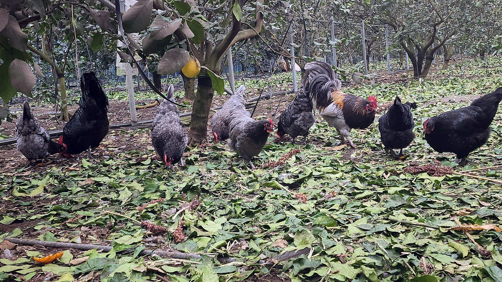 다섯살과 3살... 두살은 다른 과원에 있고 봄이 되었으니 먹고 힘내서 일해야지~