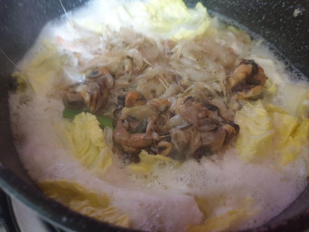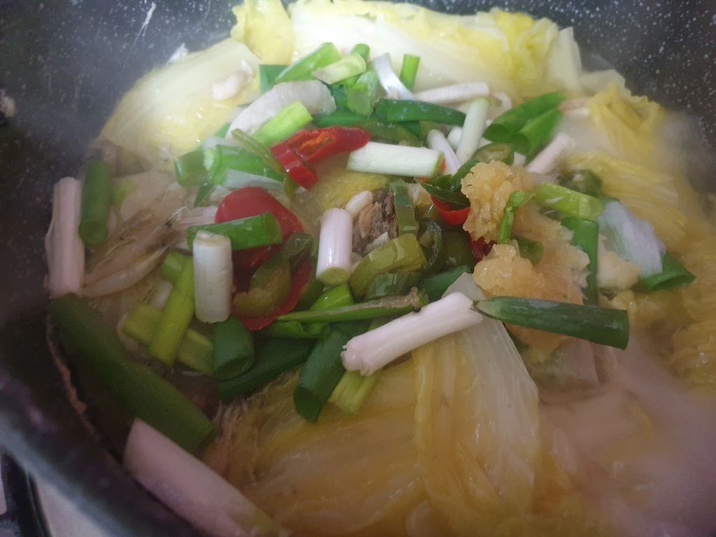 새우젓으로 간하고 배추가 익으면 생새우와