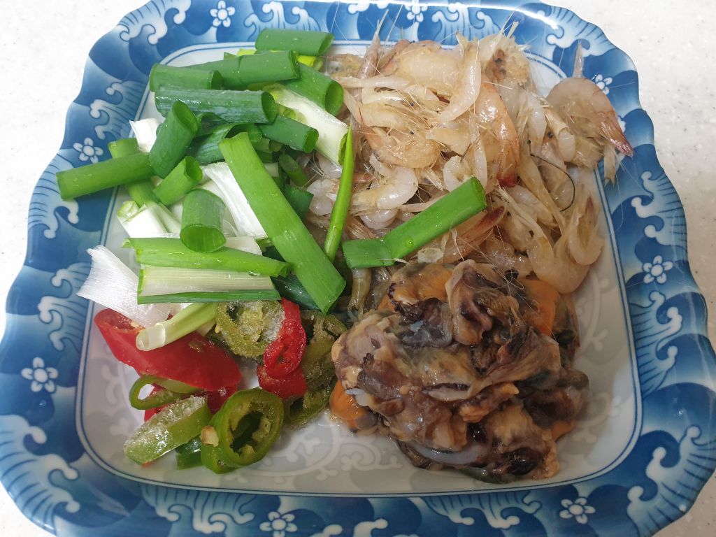 김장때 남겨둔 생새우.홍합살을 꺼냈어요.