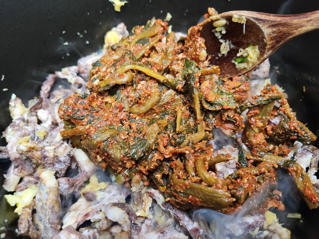 시래기 양념한거 넣고 볶으면서