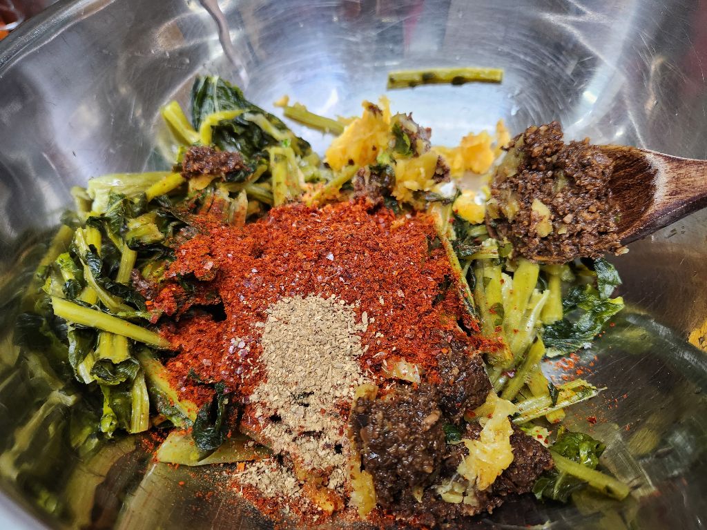 시래기에 된장.고추가루.다진마늘.표고가루