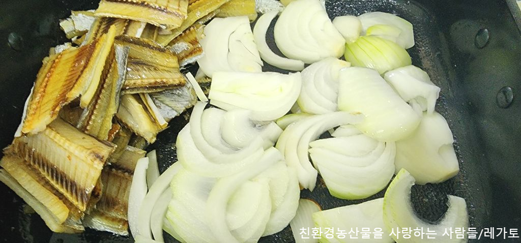 양파를 깔고 갈치를 올려줍니다.