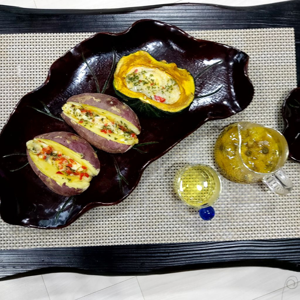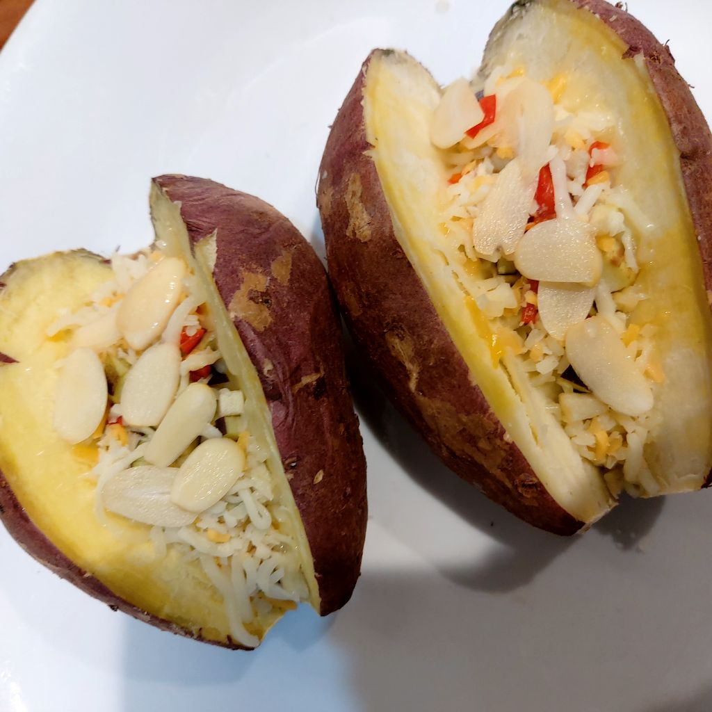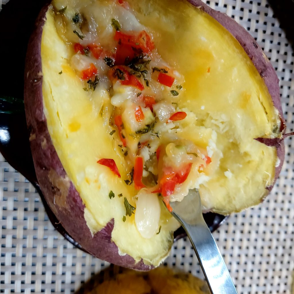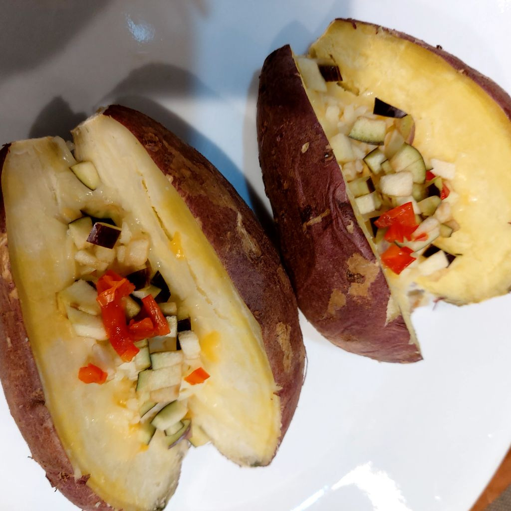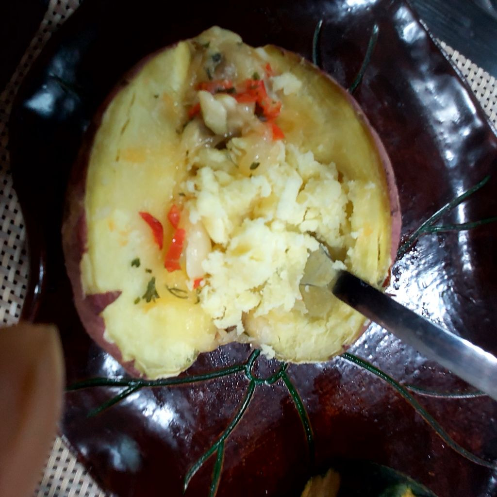 구운 고구마를 바닥 조금 남기고 칼질을 멈춰 주셔요