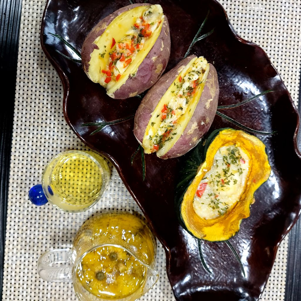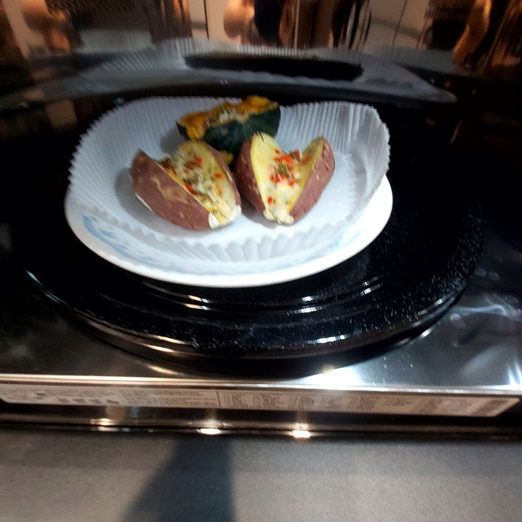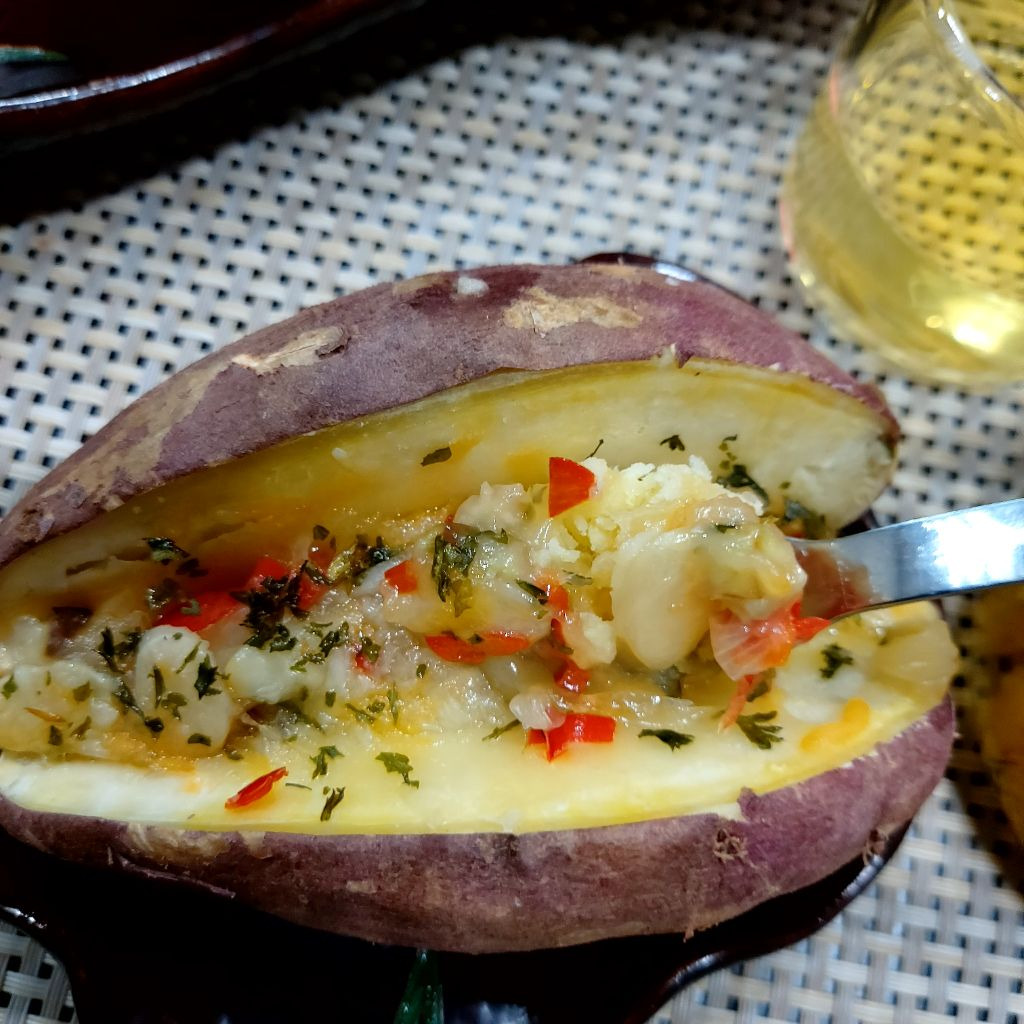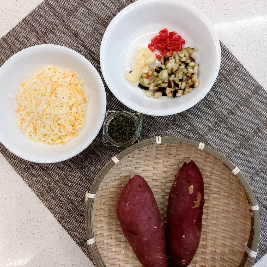 구운 고구마를 바닥 조금 남기고 칼질을 멈춰 주셔요
