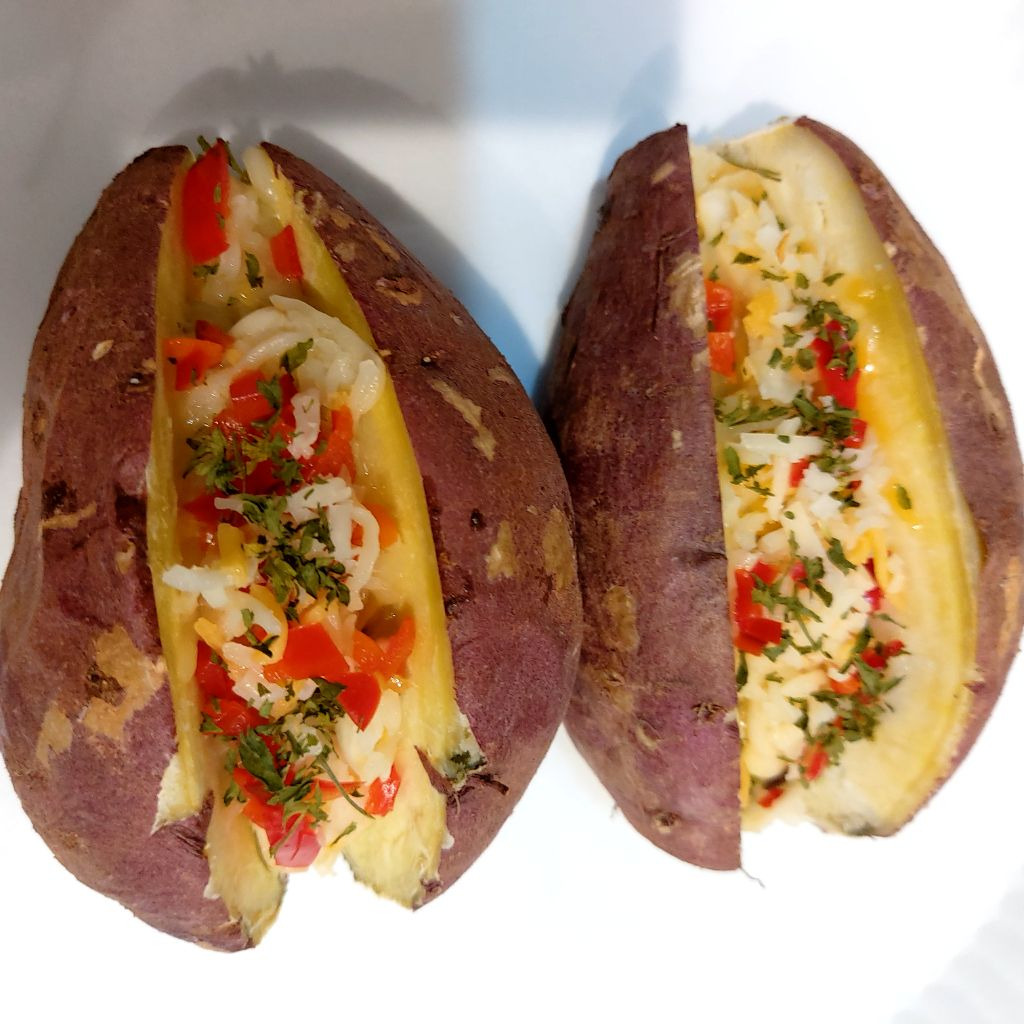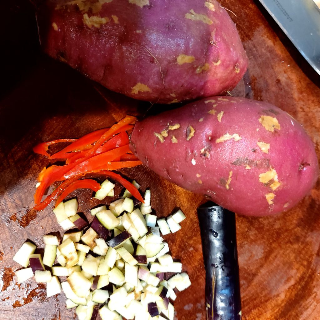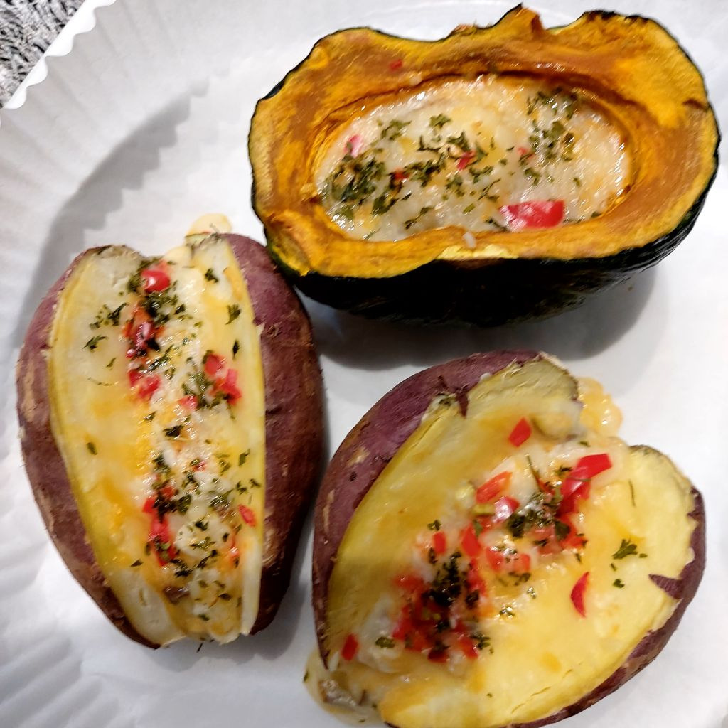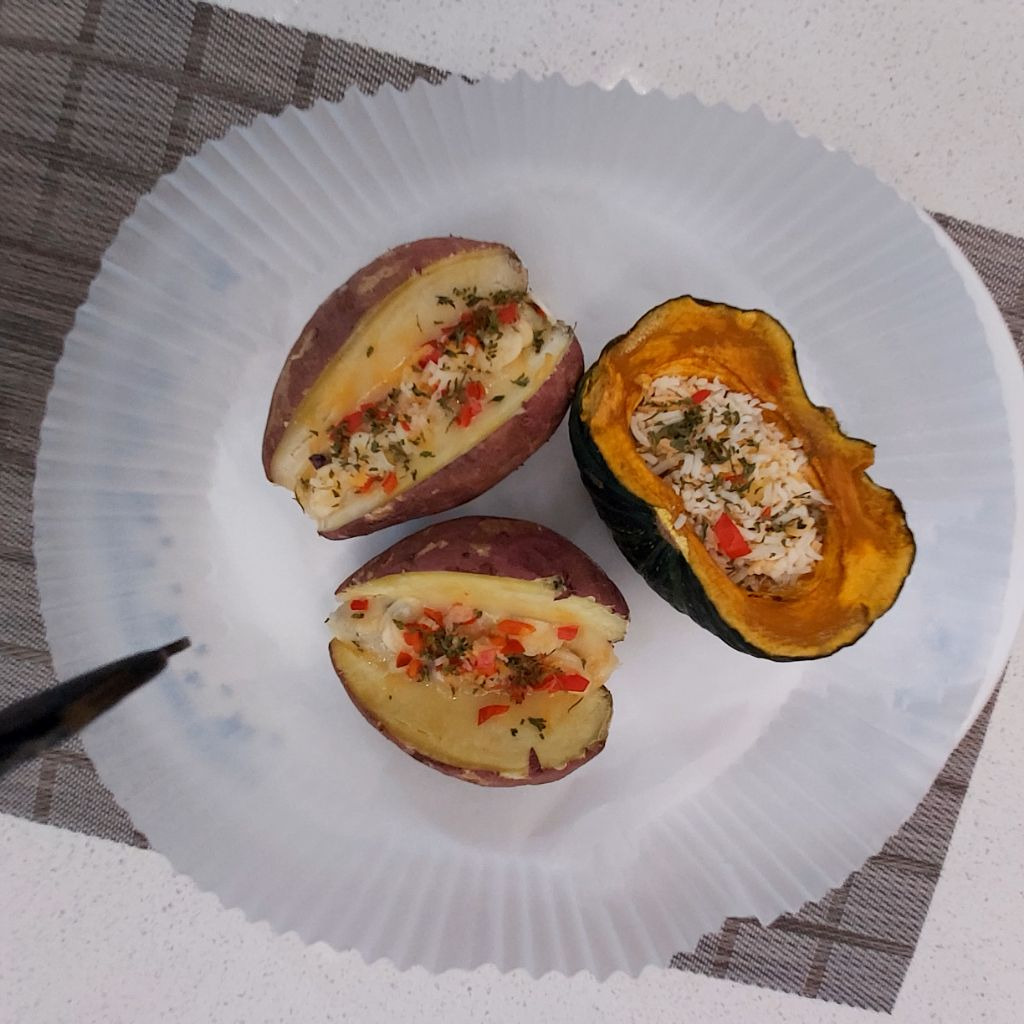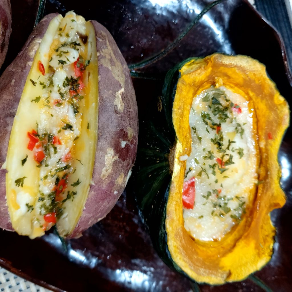 구운 고구마를 바닥 조금 남기고 칼질을 멈춰 주셔요