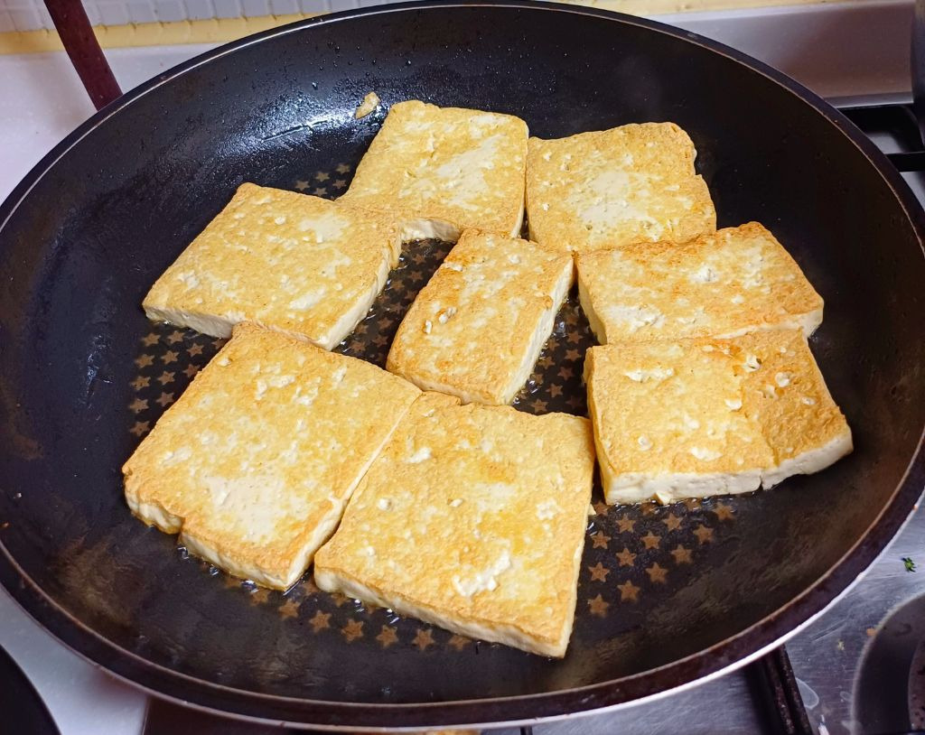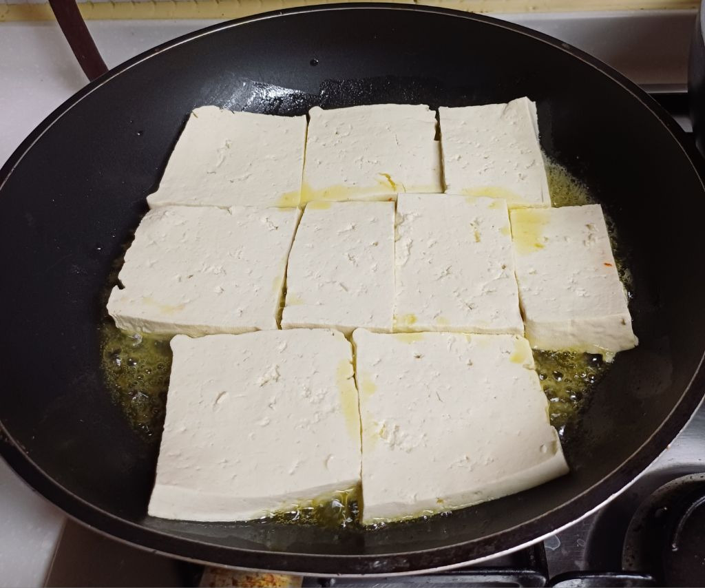두부는 잘라서 수분을 톡톡 닦아주구요