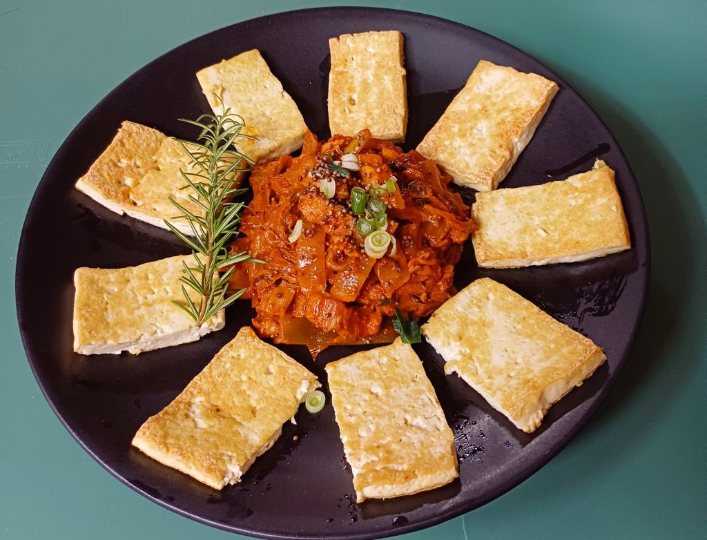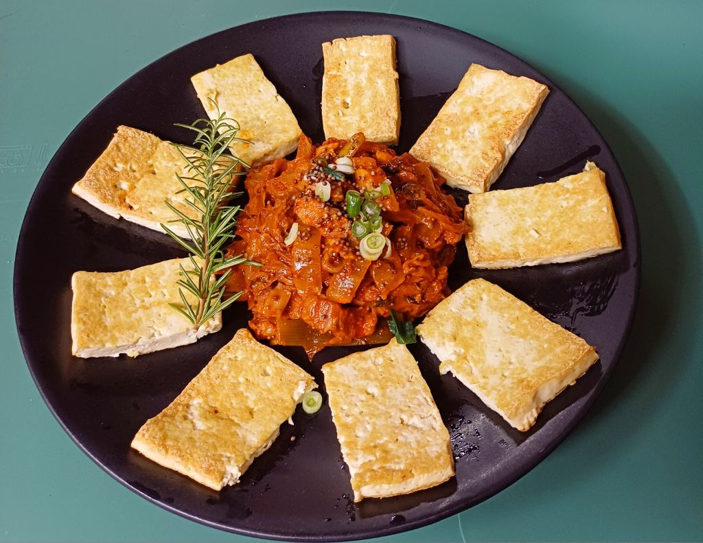 지글지글 들기름에 두부도 굽고 돼지목살도 볶아습니다