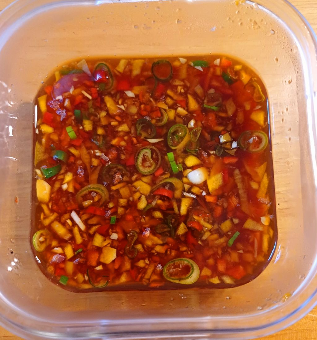 위 소스 재료에 파프리카 다져 넣고요 마늘 다져 넣고