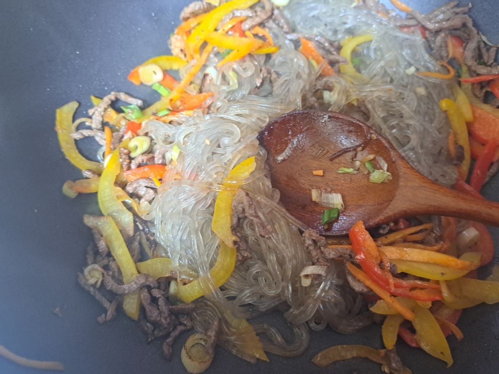 삶아놓은 당면도 볶아요.