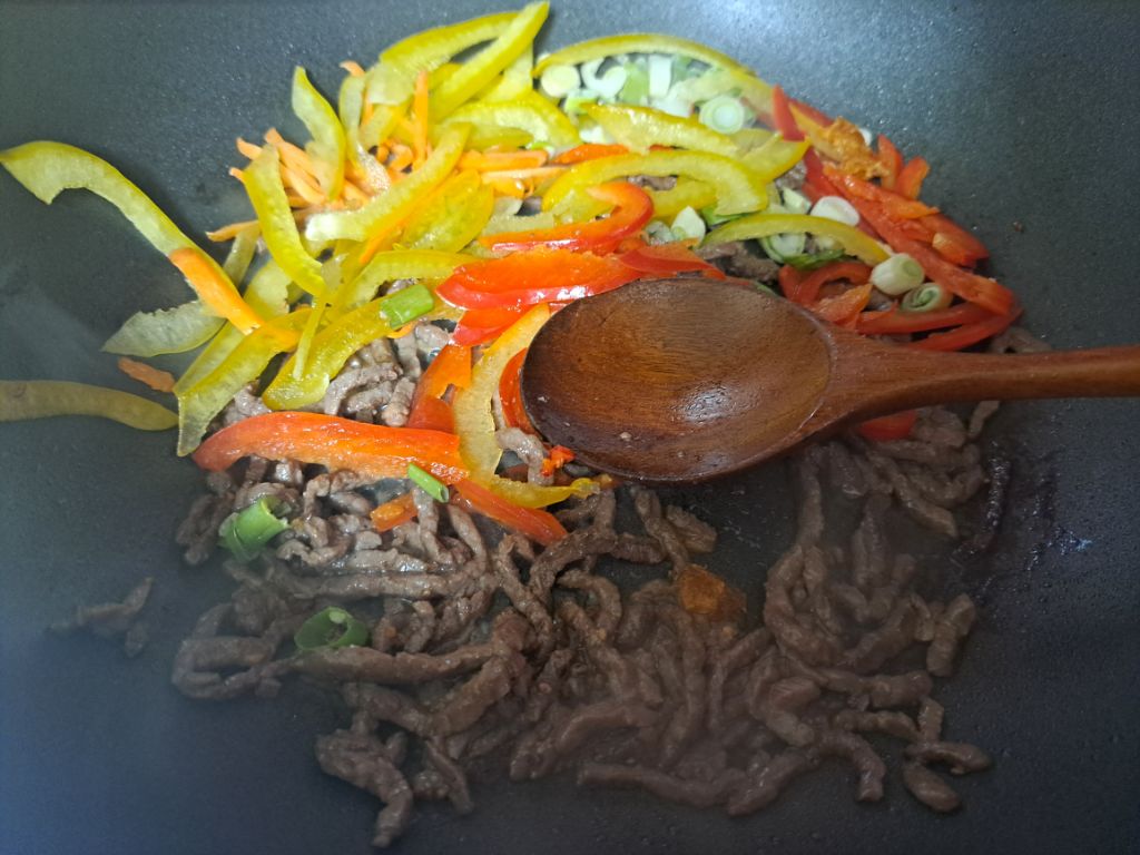 고기가 익을즈음 야채넣어 볶아요.