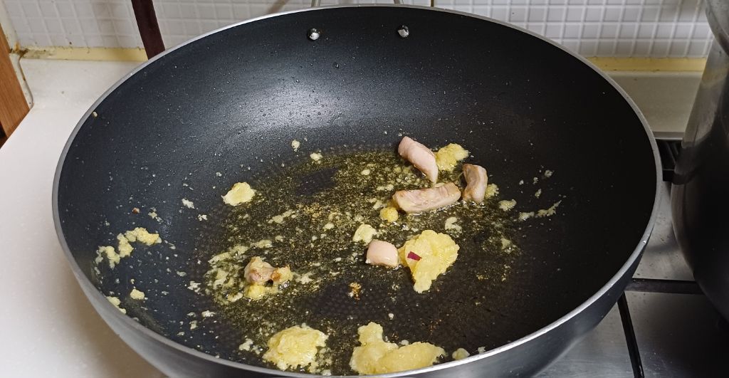 팬에 올리브유 두른 후 생강 마늘 넣어 향을 내고요